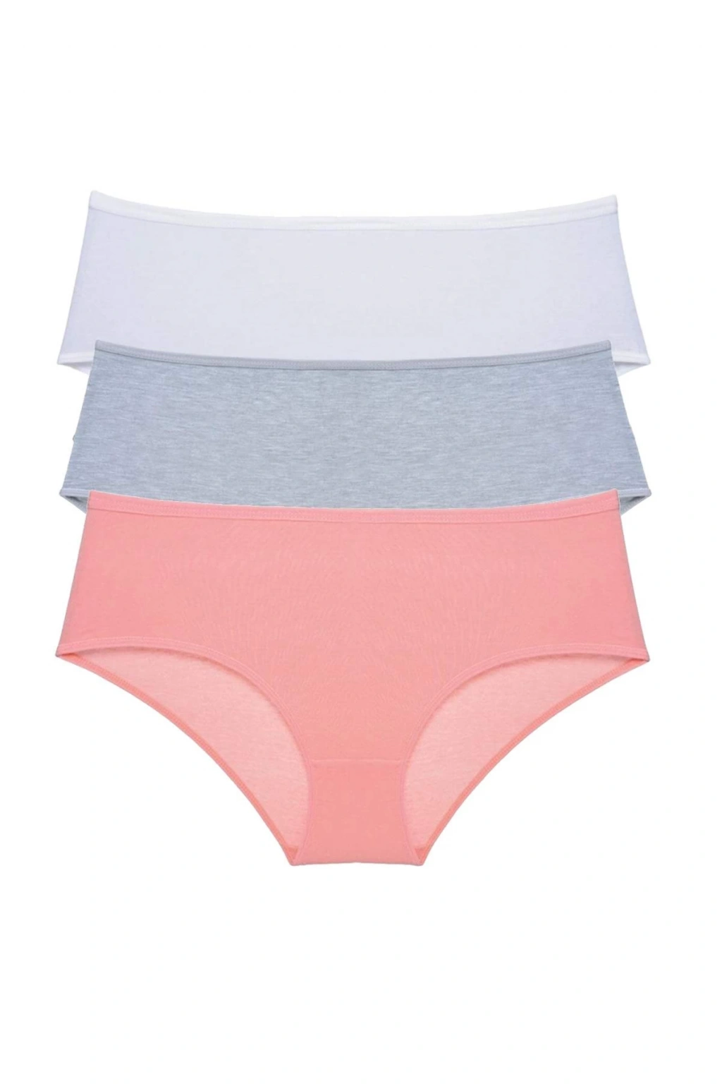 3 Adet Kadın Yüksek Bel Bato Külot Beyaz Gri Pudra