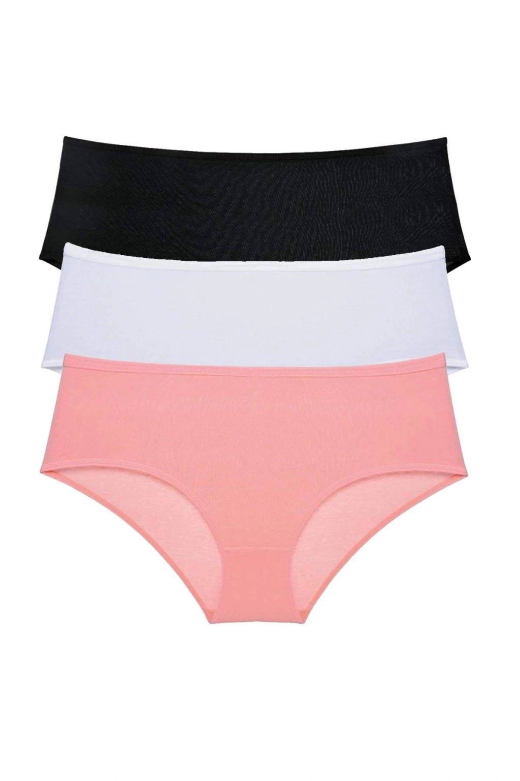 3 Adet Kadın Yüksek Bel Bato Külot Siyah Beyaz Pudra
