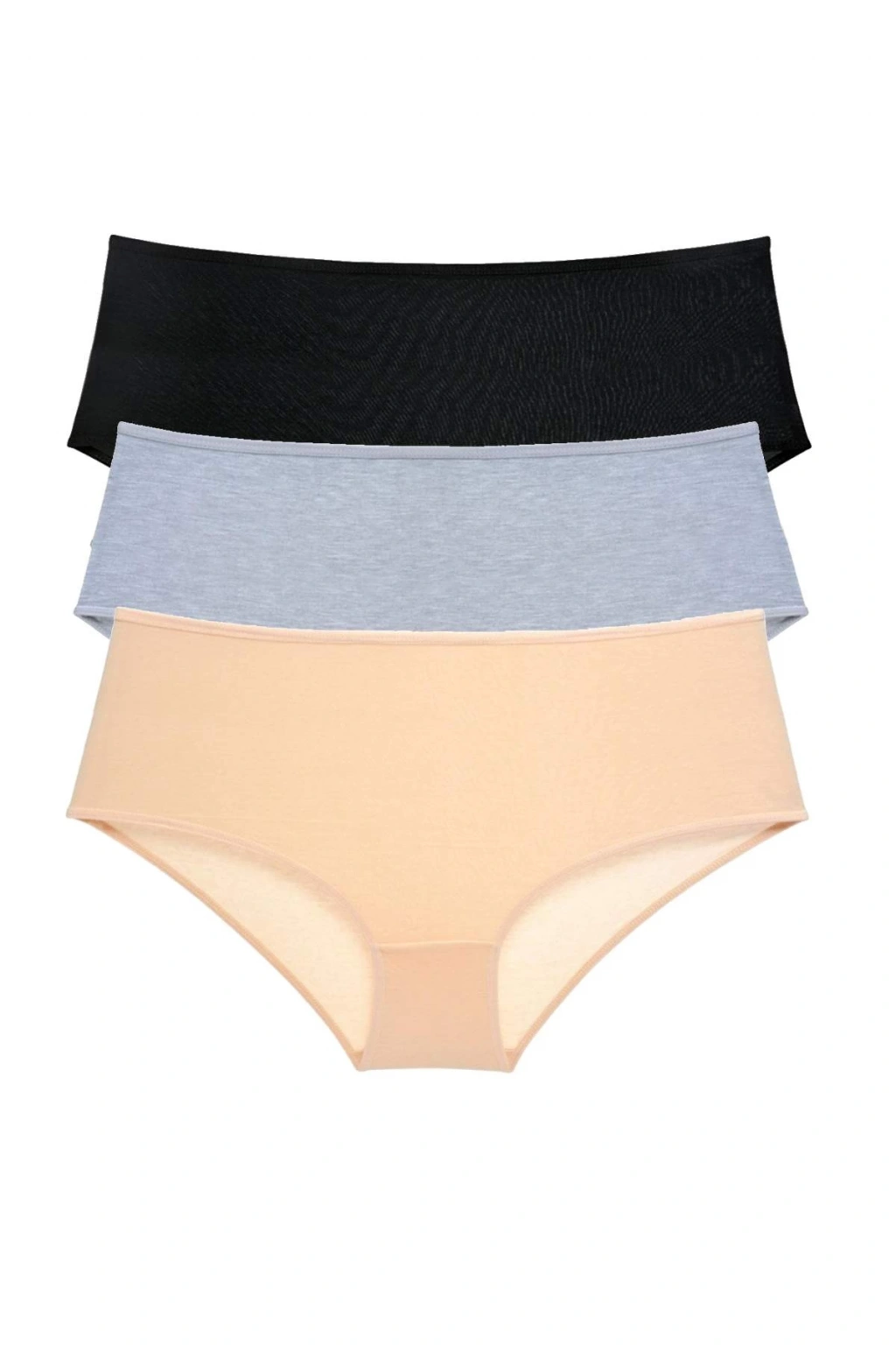 3 Adet Kadın Yüksek Bel Bato Külot Siyah Gri Ten