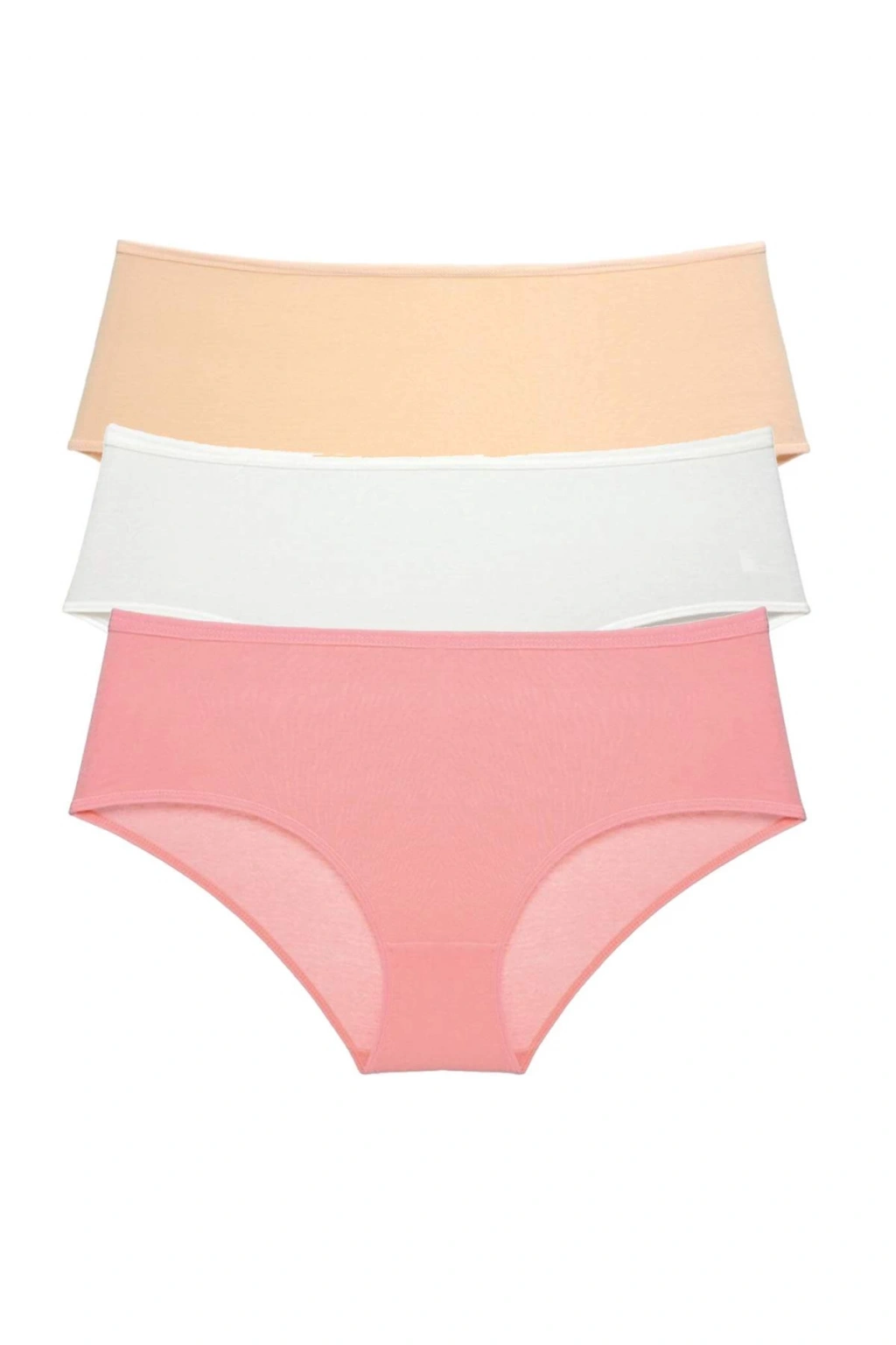 3 Adet Kadın Yüksek Bel Bato Külot Ten Krem Pudra
