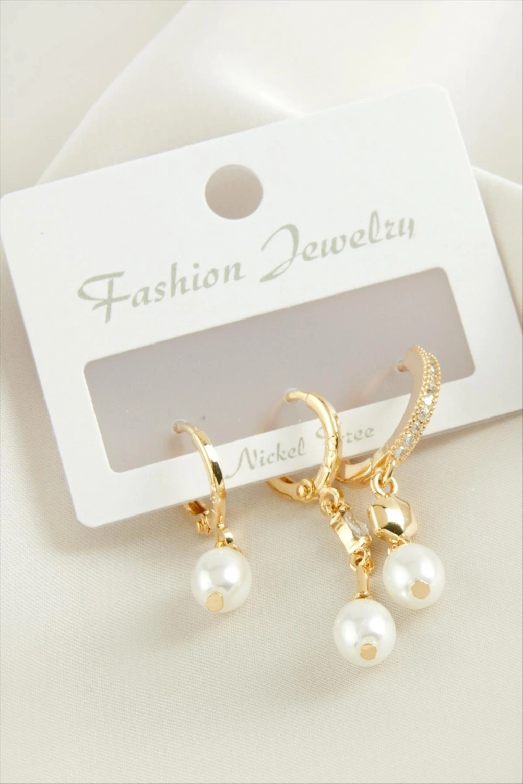 3 Adet Oval İnci Zirkon Taşlı Küpe