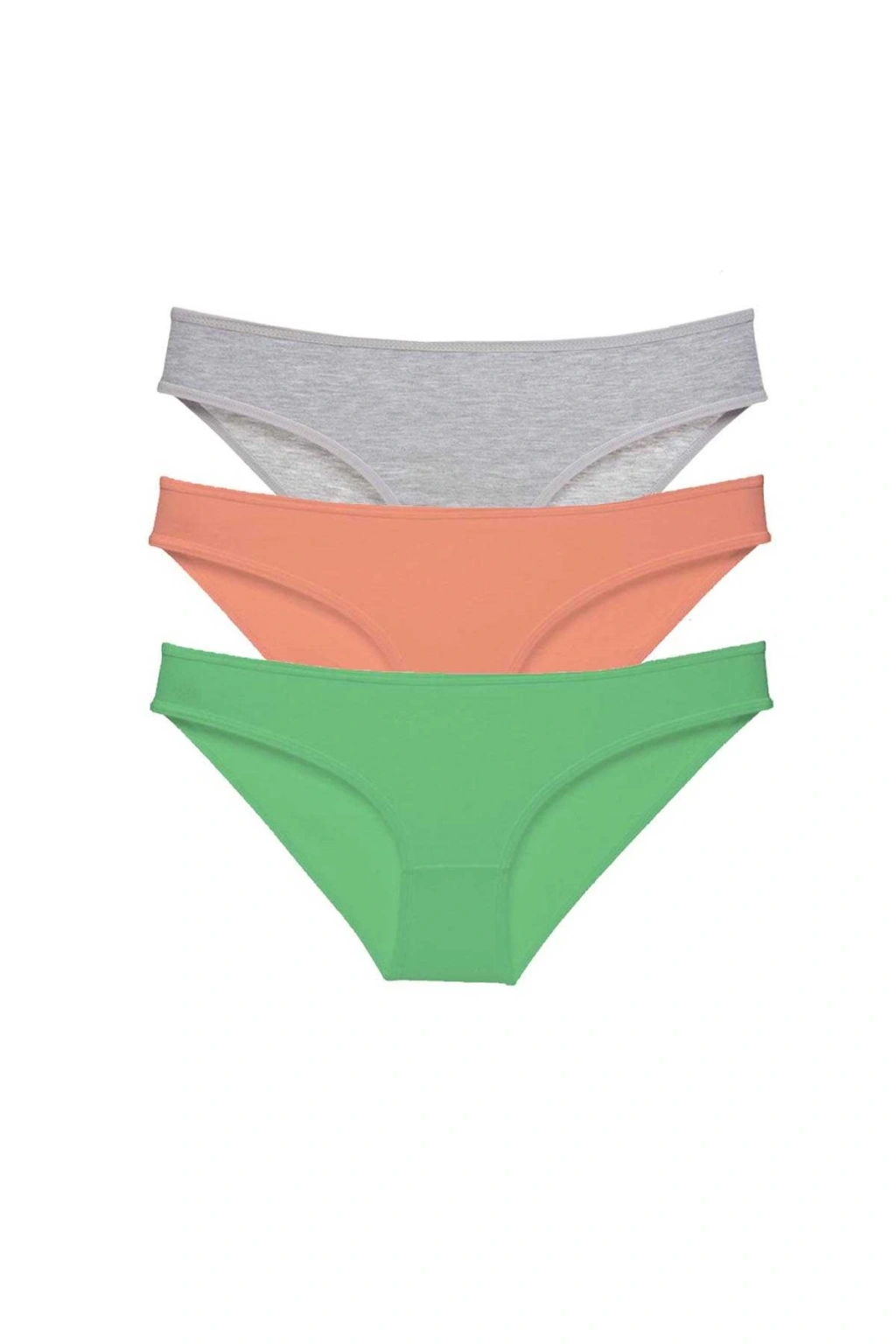 3 adet Süper Eko Set Likralı Kadın Slip Külot Gri Pudra Yeşil