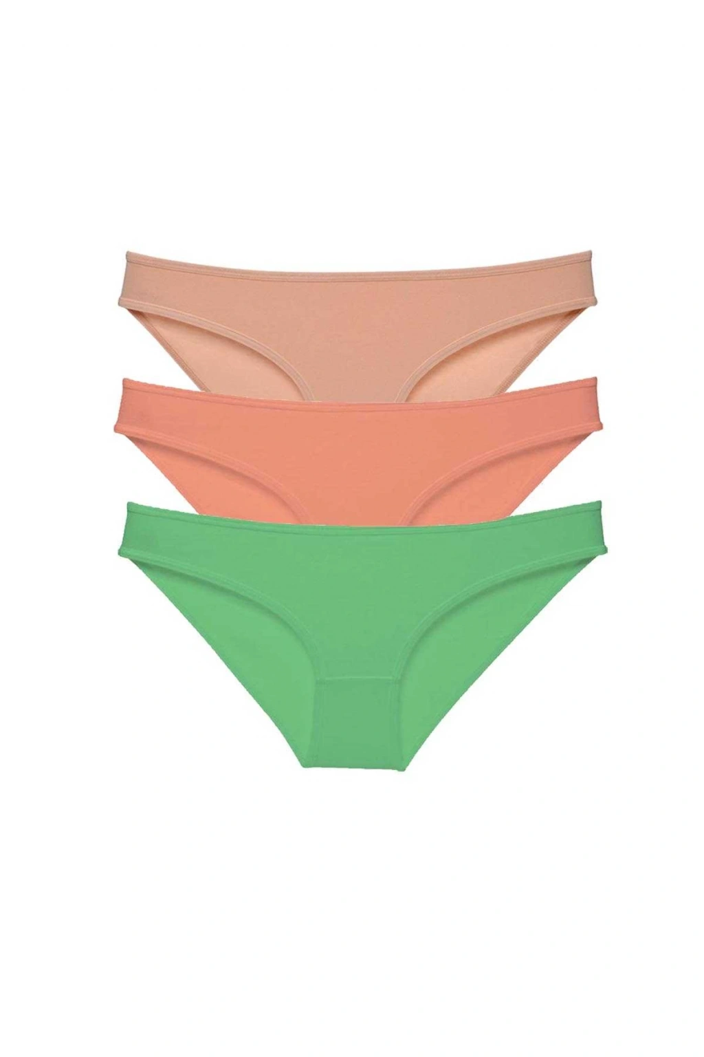 3 adet Süper Eko Set Likralı Kadın Slip Külot Ten Pudra Yeşil
