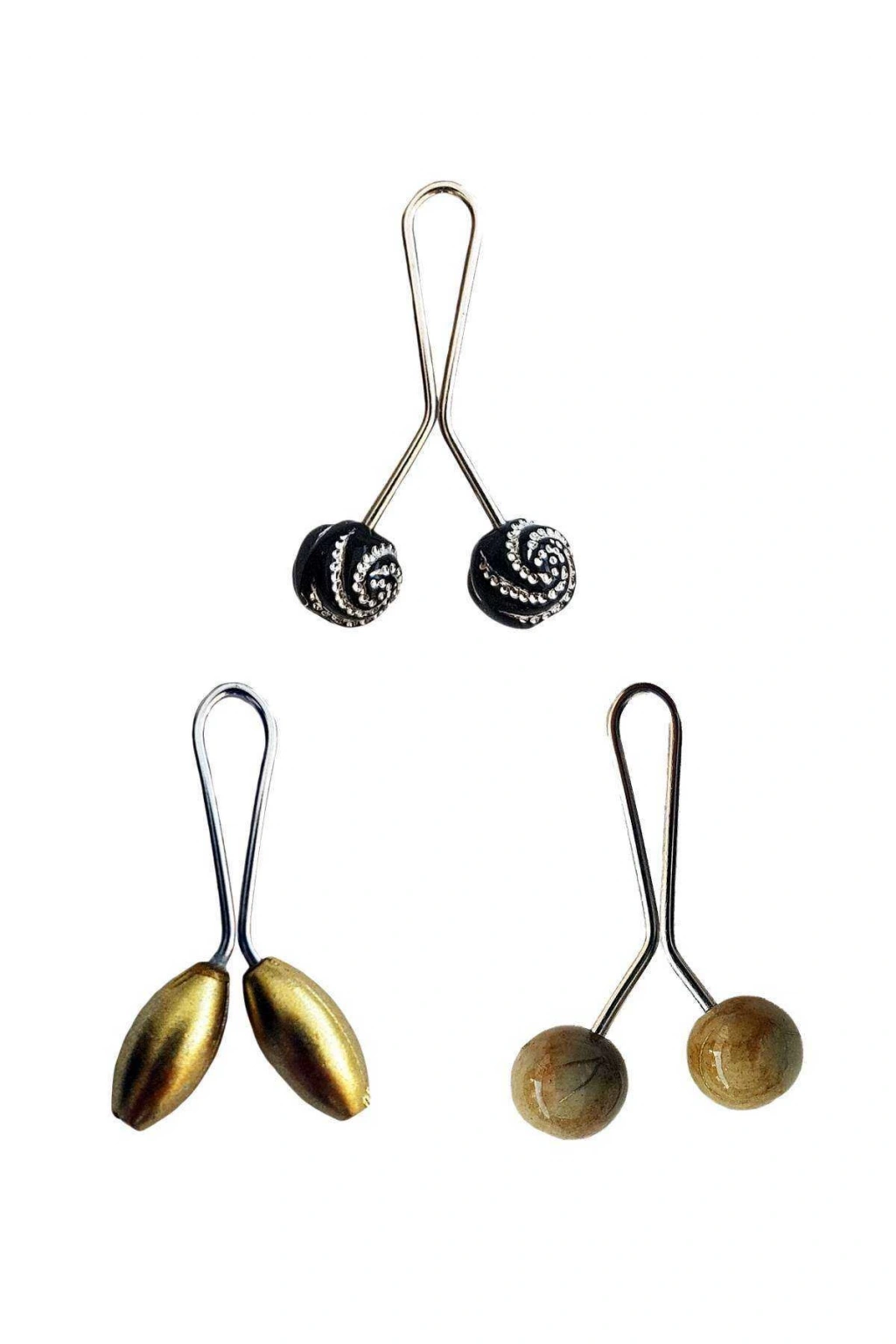 3 Adet Tesettür Eşarp ve Şal Klipsi Sarı Hardal Siyah Desenli