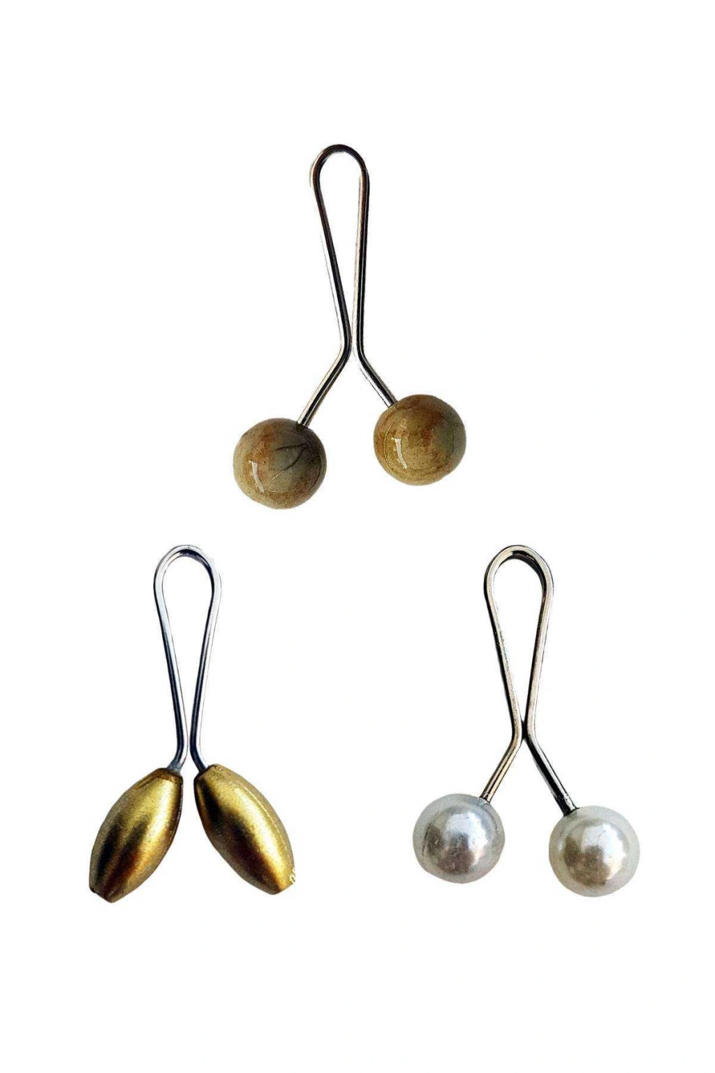3 Adet Tesettür Eşarp ve Şal Klipsi Sarı İnci Beyaz Hardal