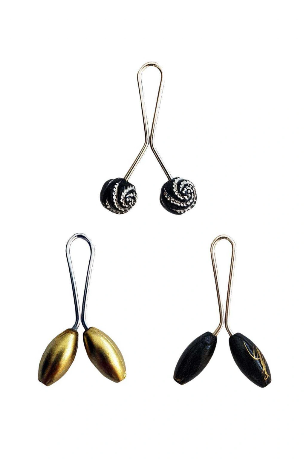 3 Adet Tesettür Eşarp ve Şal Klipsi Sarı Siyah Siyah Desenli