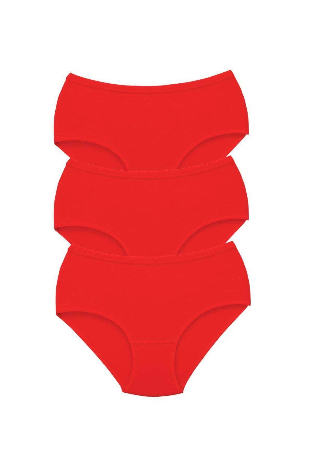3 Adet Tutku Kadın Yüksek Bel Bato Kalın Lastik Külot Kırmızı
