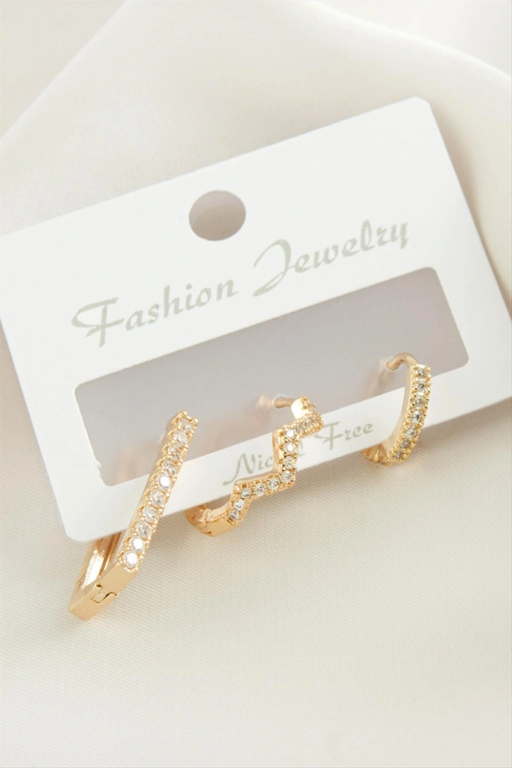 3 Adet Zikzak Zirkon Taşlı Küpe