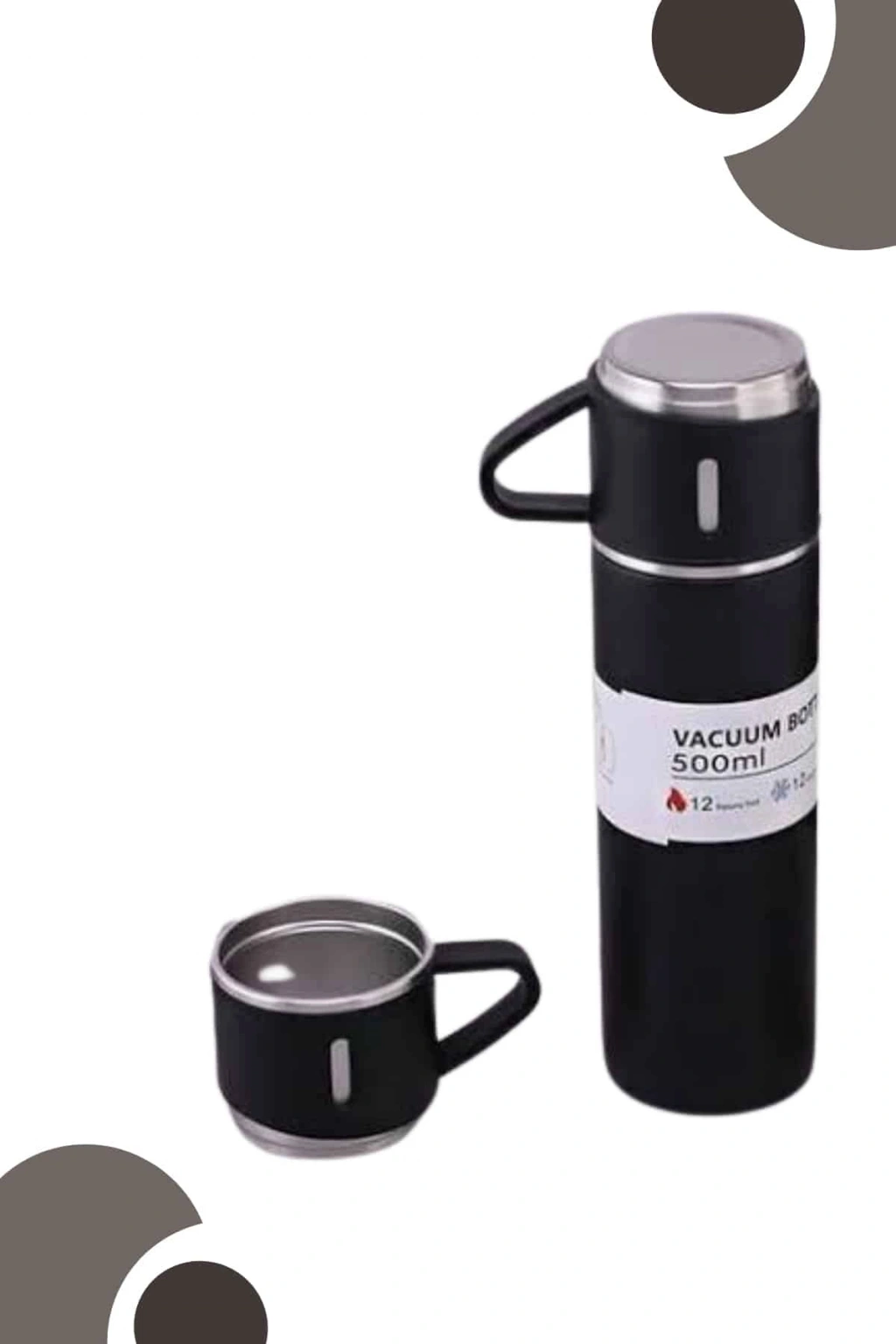 Paslanmaz çelikten üretilen 500 ml kapasiteli vakumlu termos seti, 12 saate kadar sıcak ve soğuk içecekleri ideal ısı seviyelerinde tutma özelliğine sahiptir. Vakumlanmış teknoloji sayesinde yüksek ısı muhafazası sağlayarak içeceklerinizi uzun süre taze tutar. Günlük kullanım, seyahat ve kamp gibi dış mekan aktiviteleri için ideal olan bu set, 3 adet özel bardak içeriğiyle içeceklerinizi sevdiklerinizle paylaşma imkanı sunar.Kaydırmaz taban özelliği sayesinde güvenli kullanım sağlayan termos, 316 paslanmaz çelik malzemesi ile dayanıklılığı artırılmıştır. Kolay taşınabilir yapısı ile her yere rahatça götürülebilir. Termosun kapağı vakum basıncı ile sıkışabileceğinden, sıcak sıvı ekledikten sonra kapağı hemen kapatmadan önce bir süre beklenmesi önerilir. Elde yıkamaya uygun olup, bulaşık makinesinde yıkanması tavsiye edilmez. Özel hediye paketiyle gönderilen bu termos seti, şık tasarımı ve fonksiyonelliği ile hem kendiniz hem de sevdikleriniz için mükemmel bir seçimdir.