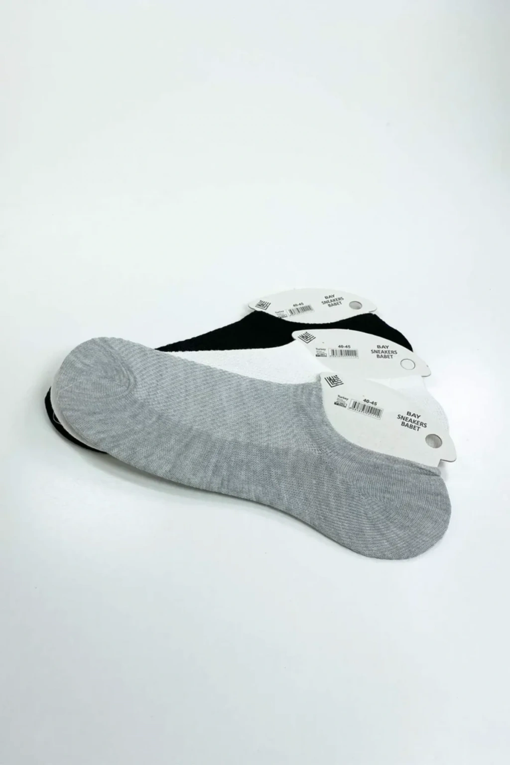 Siyah Gri ve Beyaz Erkek Görünmez Çorap 12 çift