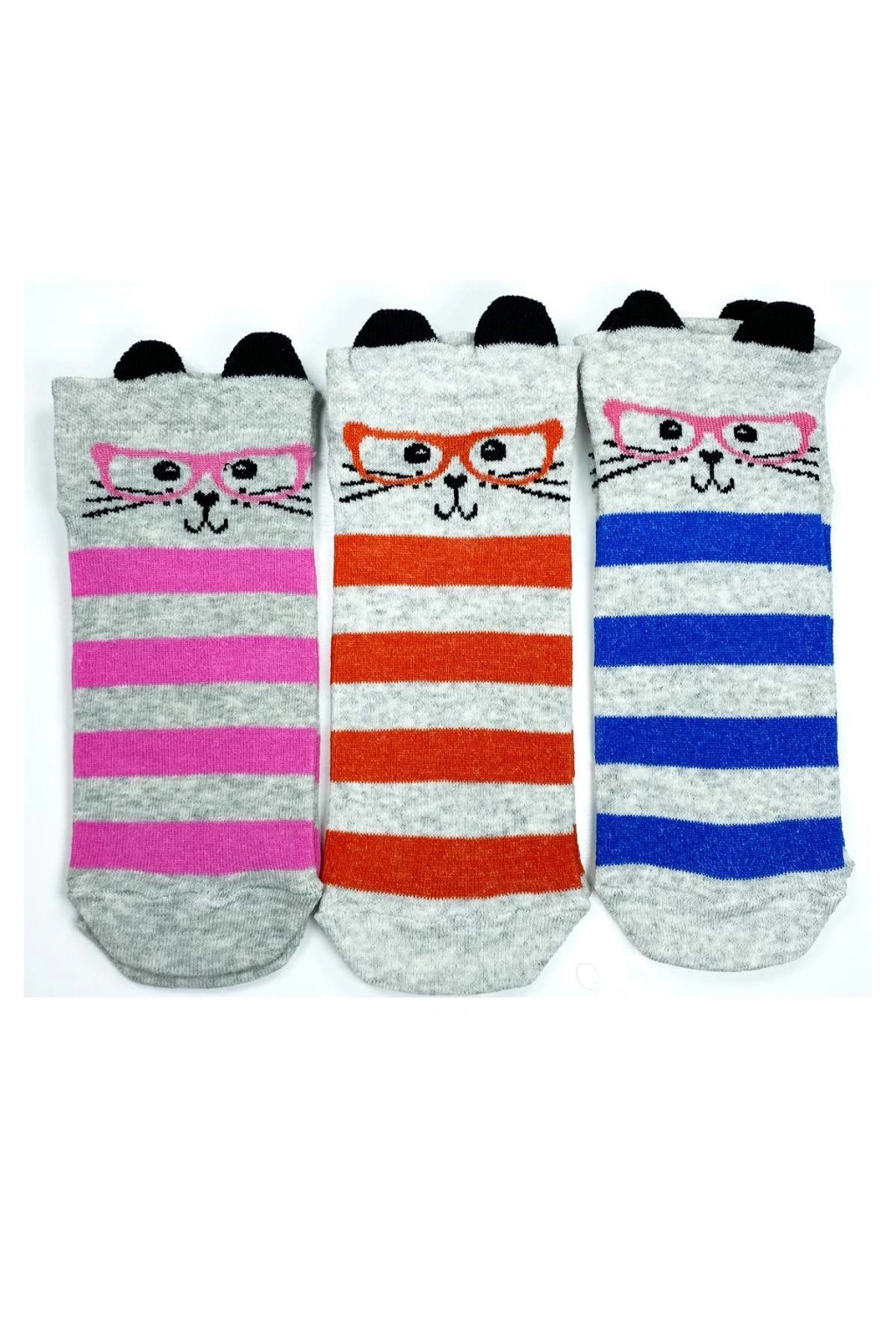 3 Çift Kedi Temalı 3 Boyut Kulaklı Pamuklu Esnek Kadın Bilek Çorap