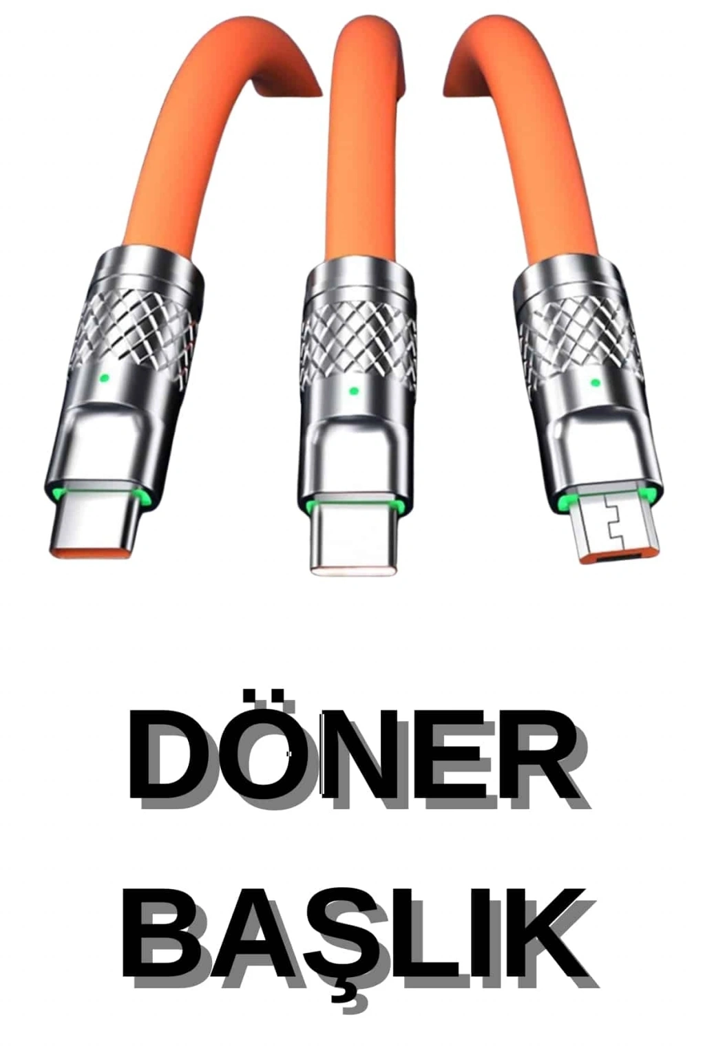 • 3 İn 1 Süper Hızlı Şarj Kablosu Android Ve İos Uyumlu Silikon Şarj Kablosu