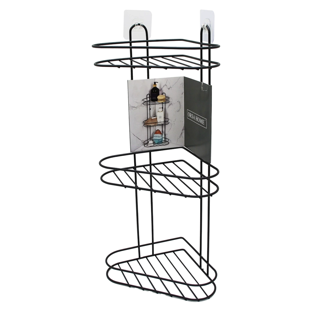 Kendiliğinden Yapışkanlı Montaj Gerektirmeyen Tek Katlı Banyo Askı Köşe Şampuanlık Siyah (4887)