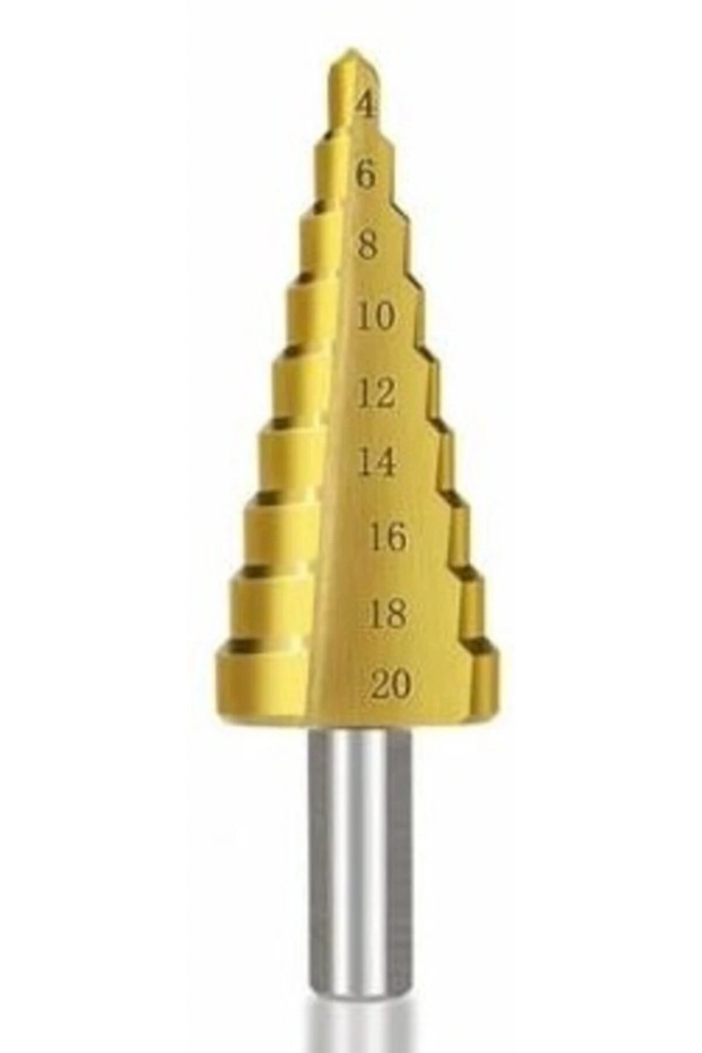Çift yiv sistemi ile çatlamadan kesim. 1. Delgi : 4, 6, 8, 10, 12 mm 2. Delgi : 4, 6, 8, 10, 12, 14, 16, 18, 20 mm 3. Delgi : 4, 6, 8, 10, 12, 14, 16, 18, 20, 22, 24, 26, 28, 30, 32 mm Normal HSS uçlara oranla 6 kata oranla daha dayanıklı kalay kaplama.