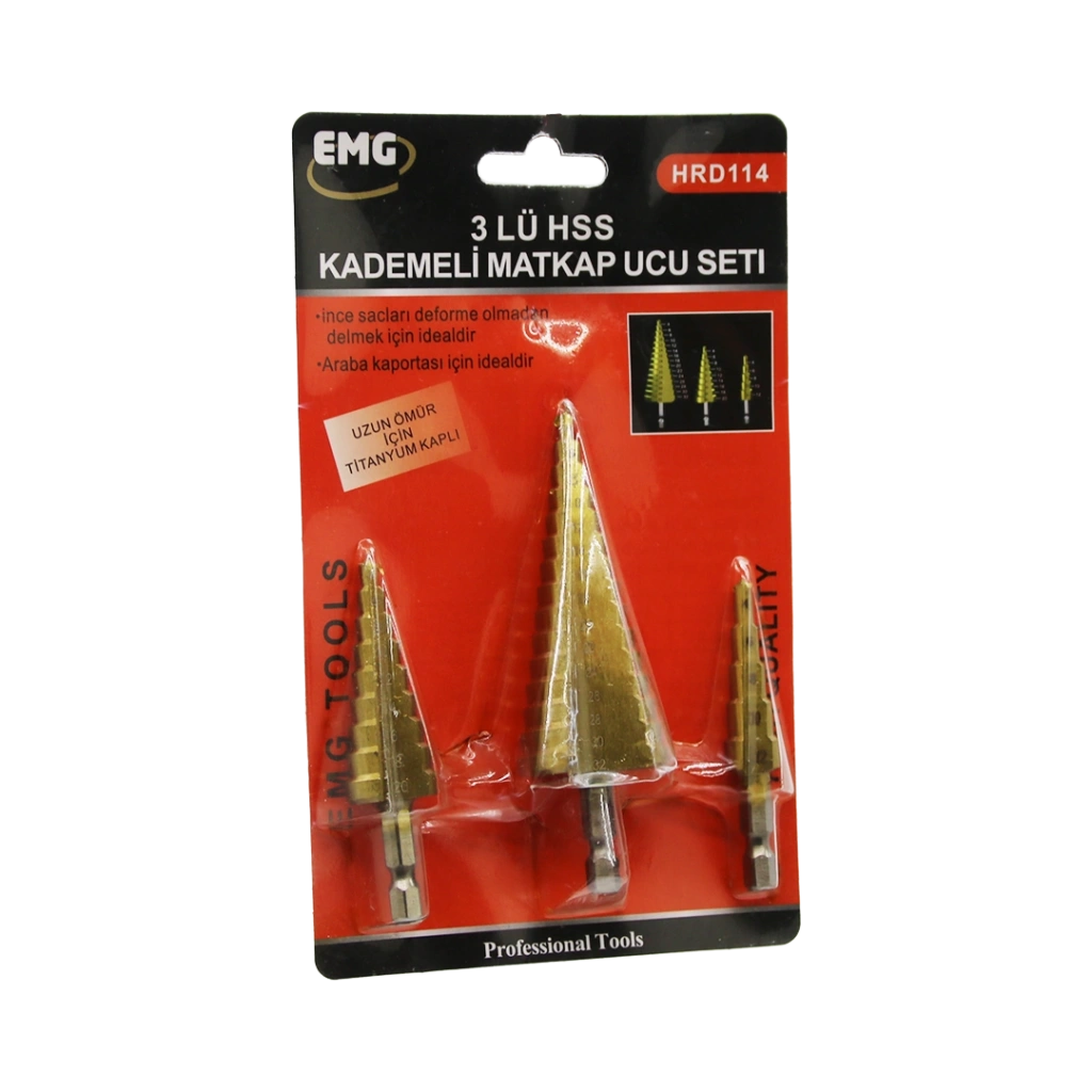3 lü Set Matkap Ucu Kademeli Sac Delme Aparatı HSS Titanyum Kaplama (4887)