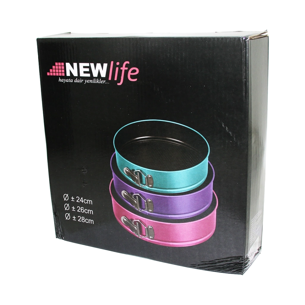 3 PARÇA YUVARLAK - RENKLİ KELEPÇELİ METAL KEK KALIP 24-26-28CM