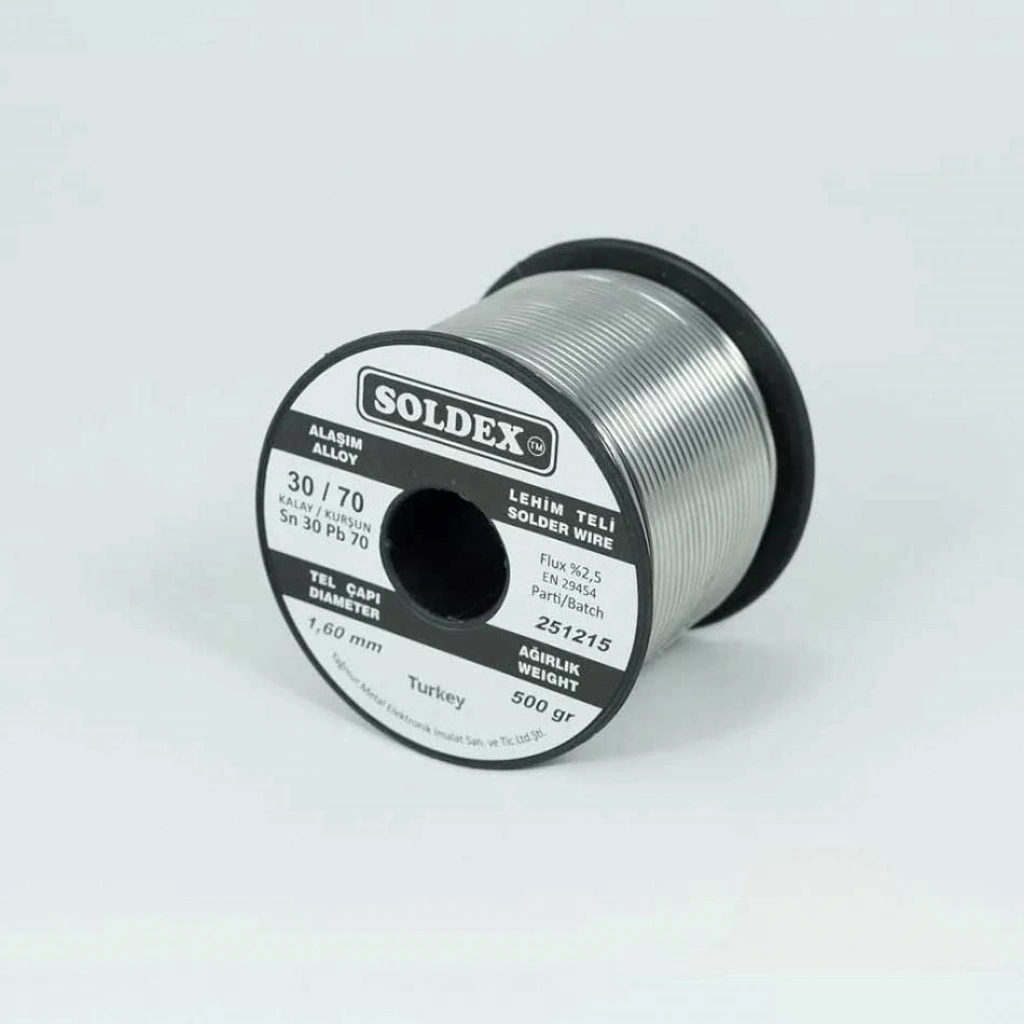 Soldex 30-70 Lehim Teli, elektronik tamirat işlerinde, özellikle yüksek sıcaklıklara maruz kalan bağlantıların yapımında kullanılan özel bir lehim alaşımıdır. Adını, içindeki %30 kalay (%Sn) ve %70 kurşun (%Pb) oranından alır. Bu oran, lehimi 63-37 oranlı lehimlere göre daha yüksek erime noktasına sahip yapar ve bu sayede daha yüksek sıcaklıklara dayanıklı bağlantılar oluşturur.