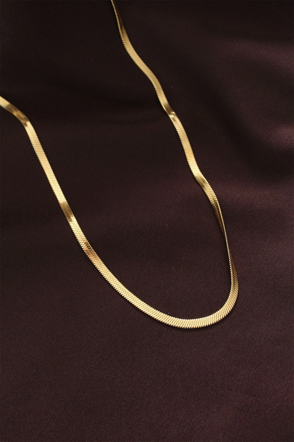 CM 14K Gold Renk Kalın Yassı Yılan Zincir Model 45 cm Kadın Kolye - TJ-BKO11006