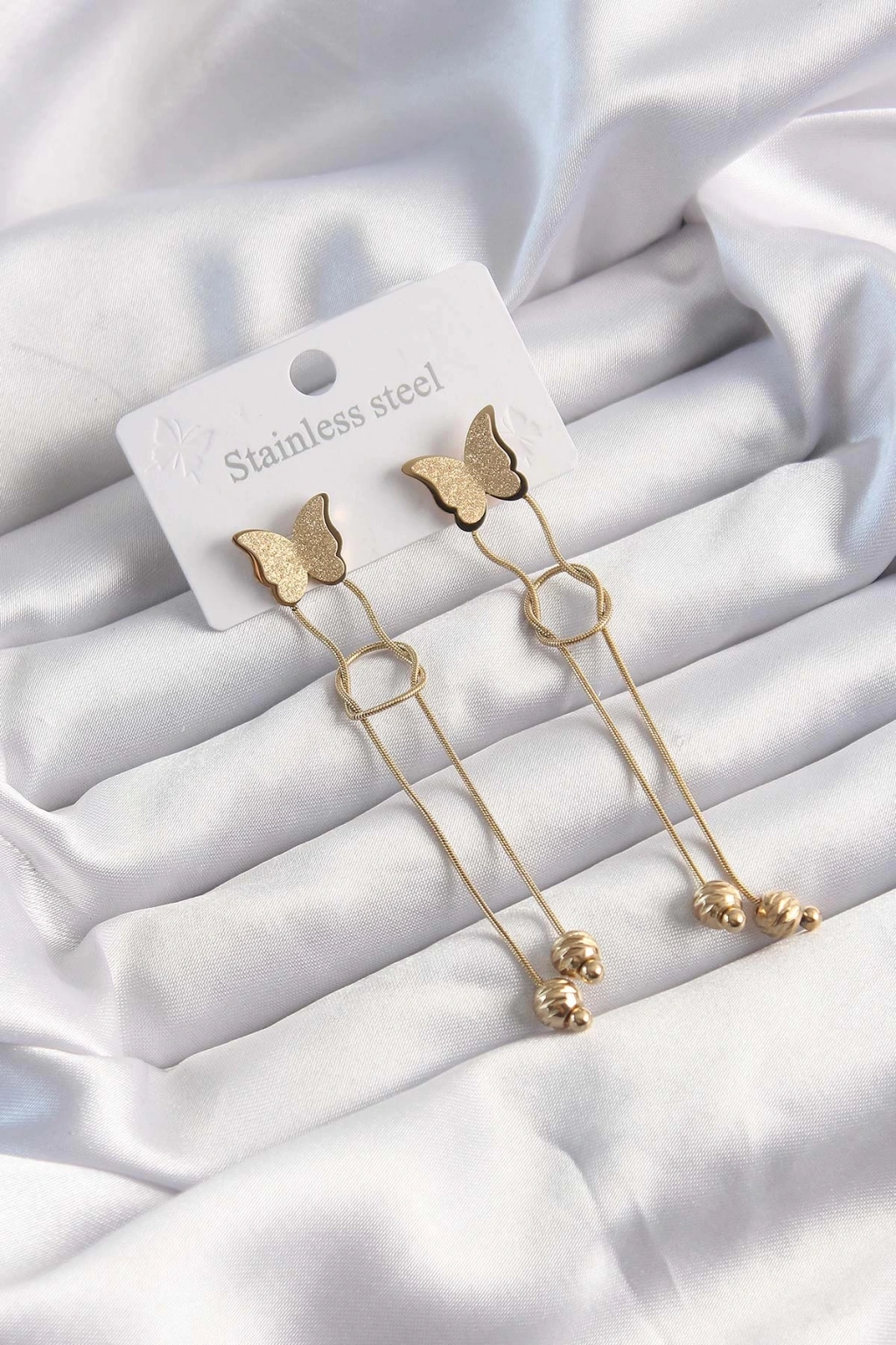 316L Çelik Altın Renk Sallantılı Düğüm Model Kelebek Küpe - TJ-BKP9496