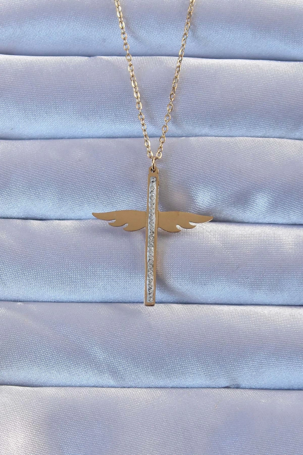 316L Çelik Altın Renk Zirkon Taşlı Mikail Kolye - TJ-BKO9265