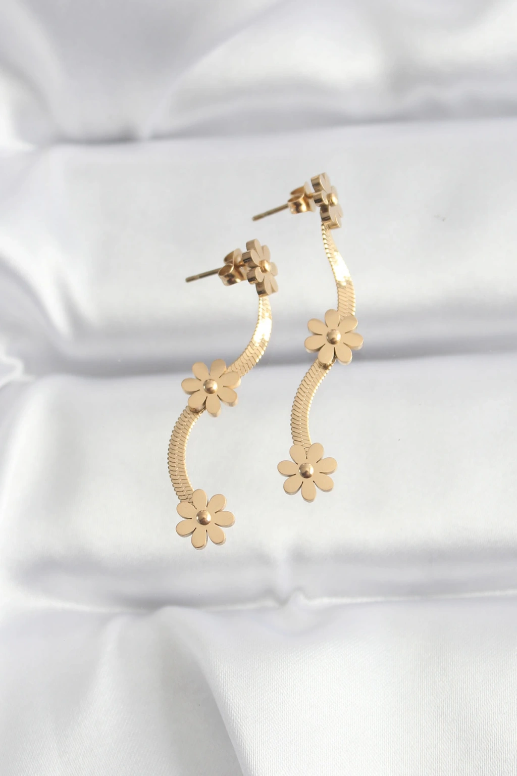 316L Çelik Gold Renk İtalyan Zincir Papatya Küpe - TJ-BKP8801