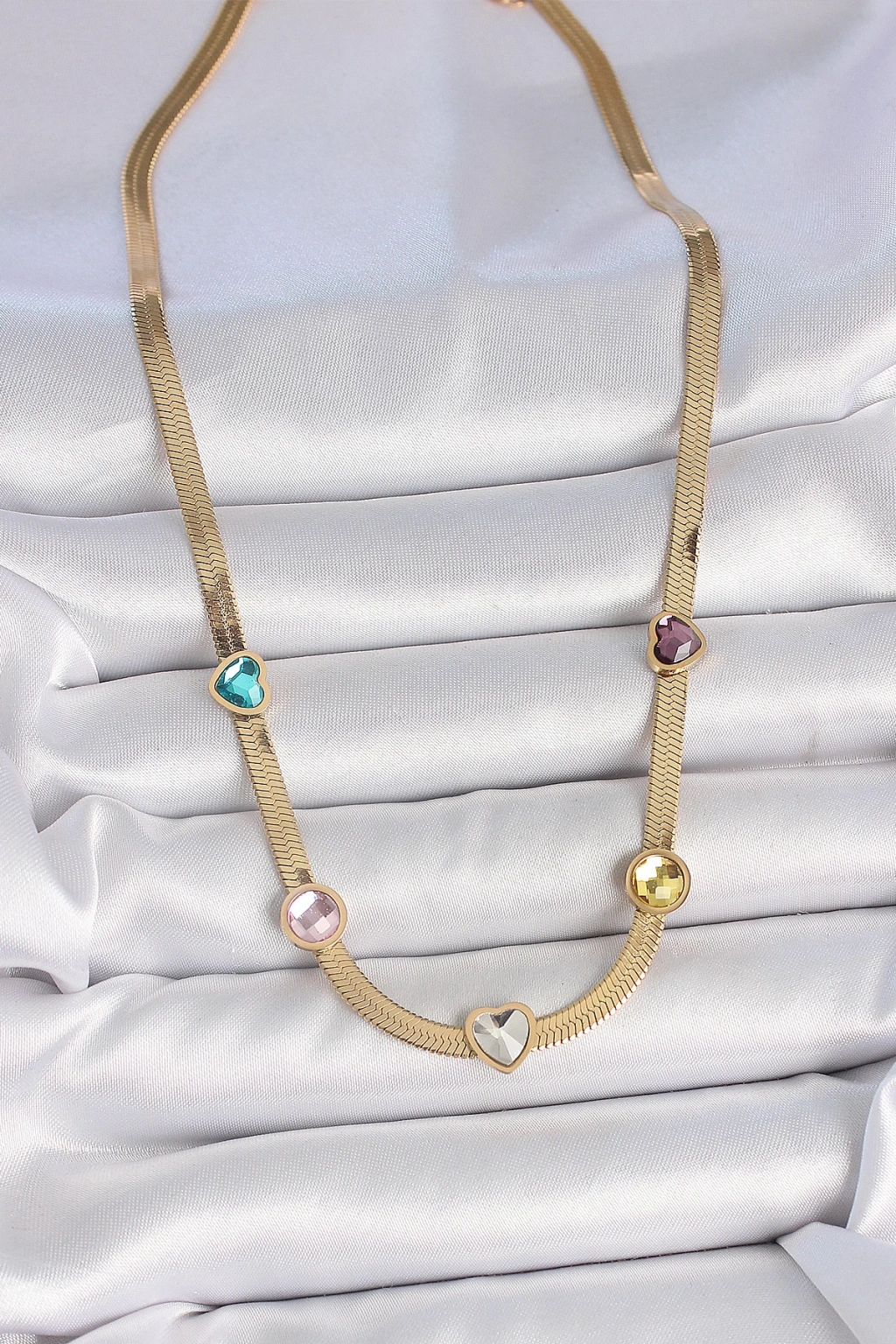 316L Çelik Gold Renk İtalyan Zincir Renkli Zirkon Taşlı Kalp Figür Kadın Kolye - TJ-BKO10117