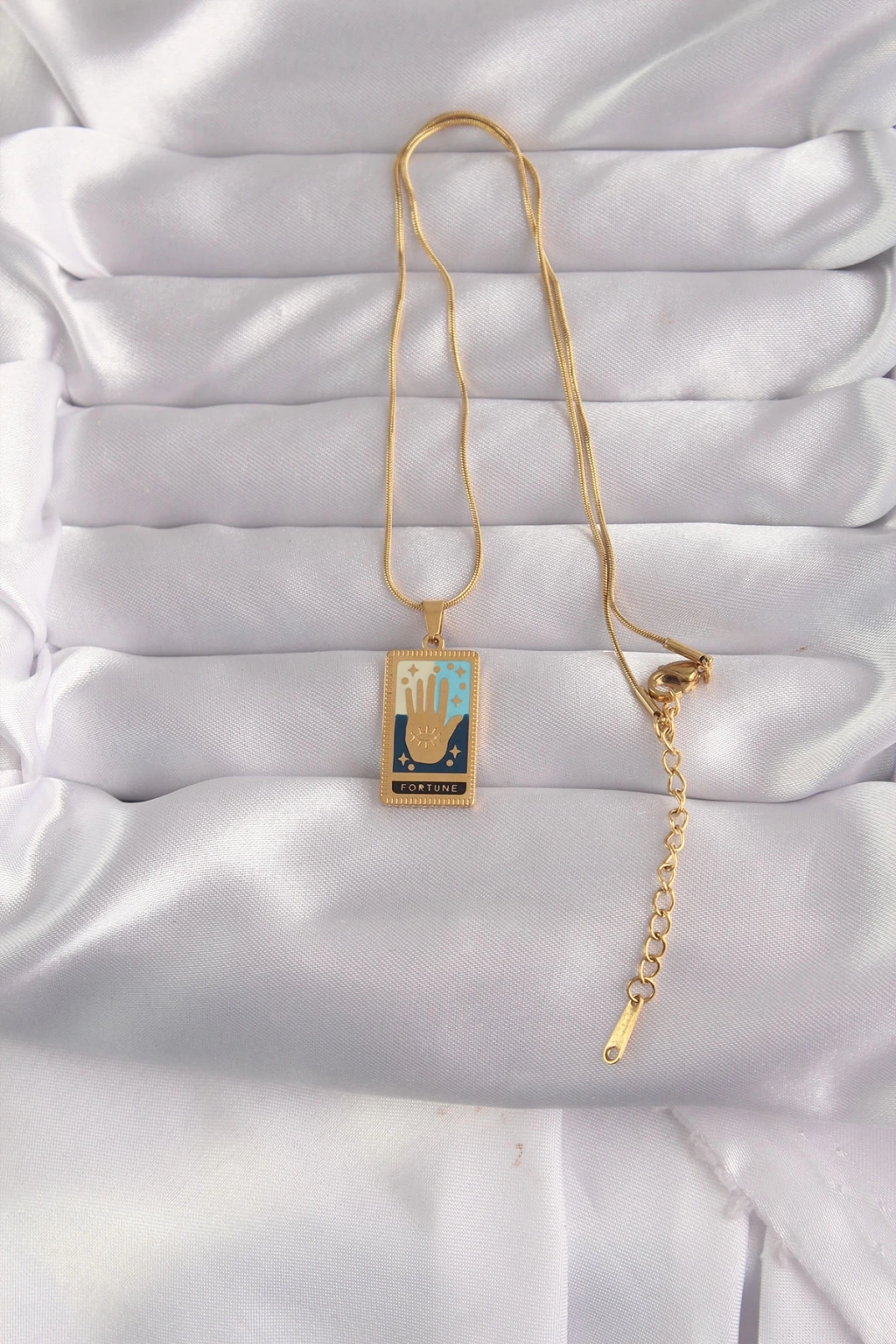 316L Çelik Gold Renk Karışık Mineli El Figür Tarot Kolye - TJ-BKO9035