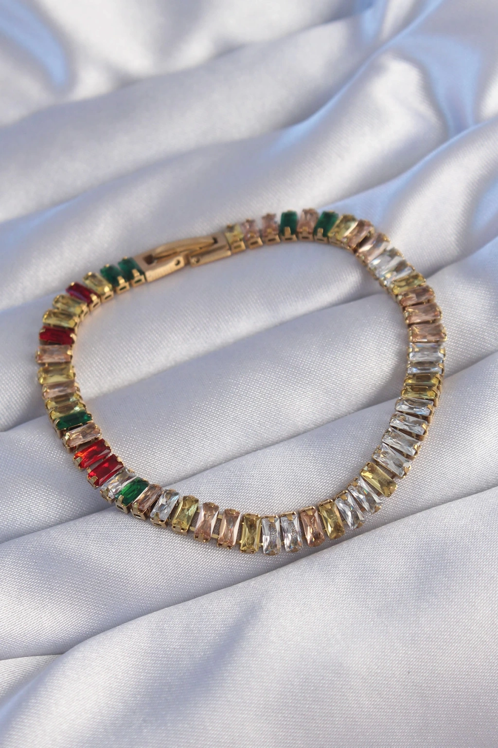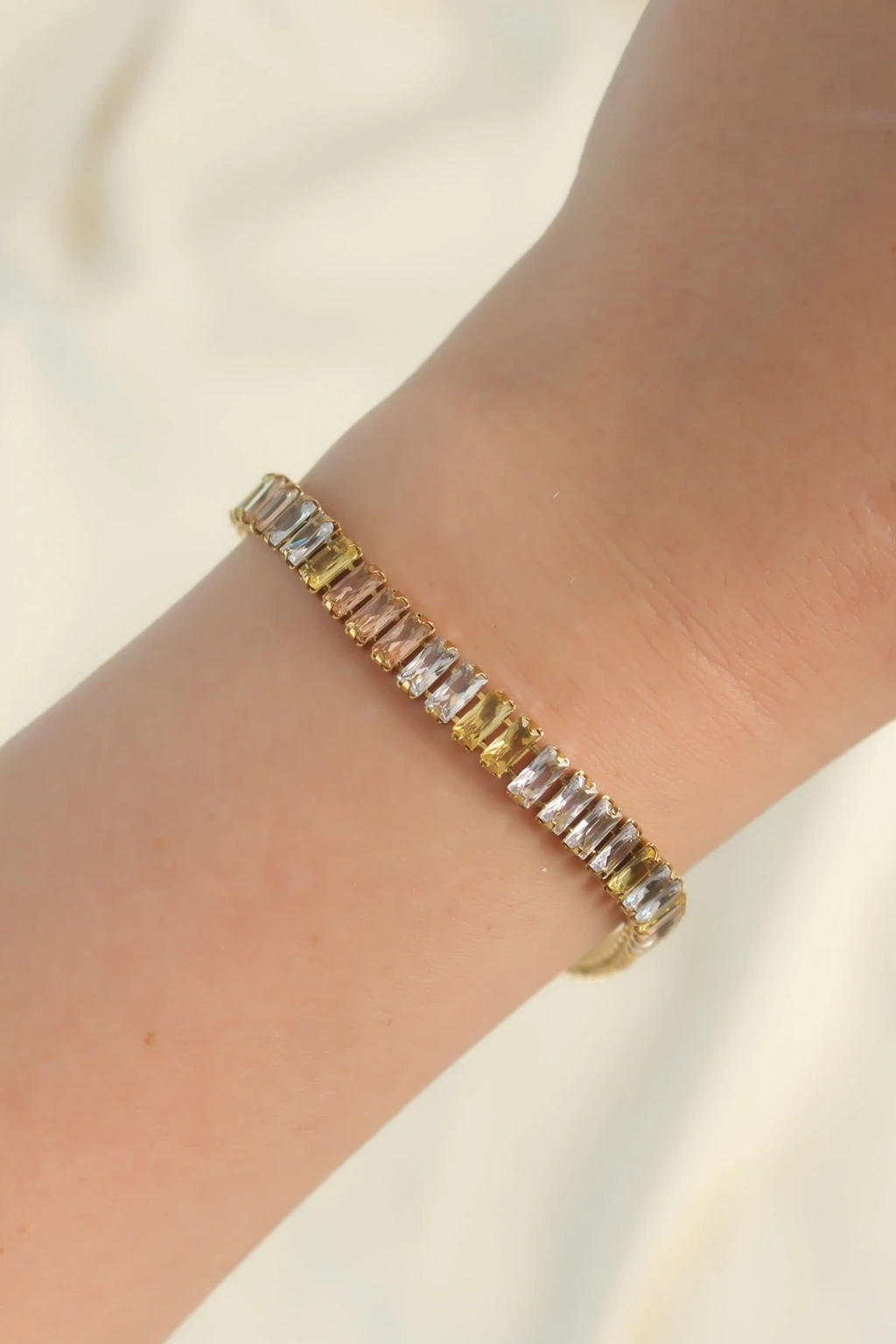 Zirkon Taşlı Gold Renk Tek Taş Model 3'lü Kadın Bileklik Kombini - TJ-BB8351