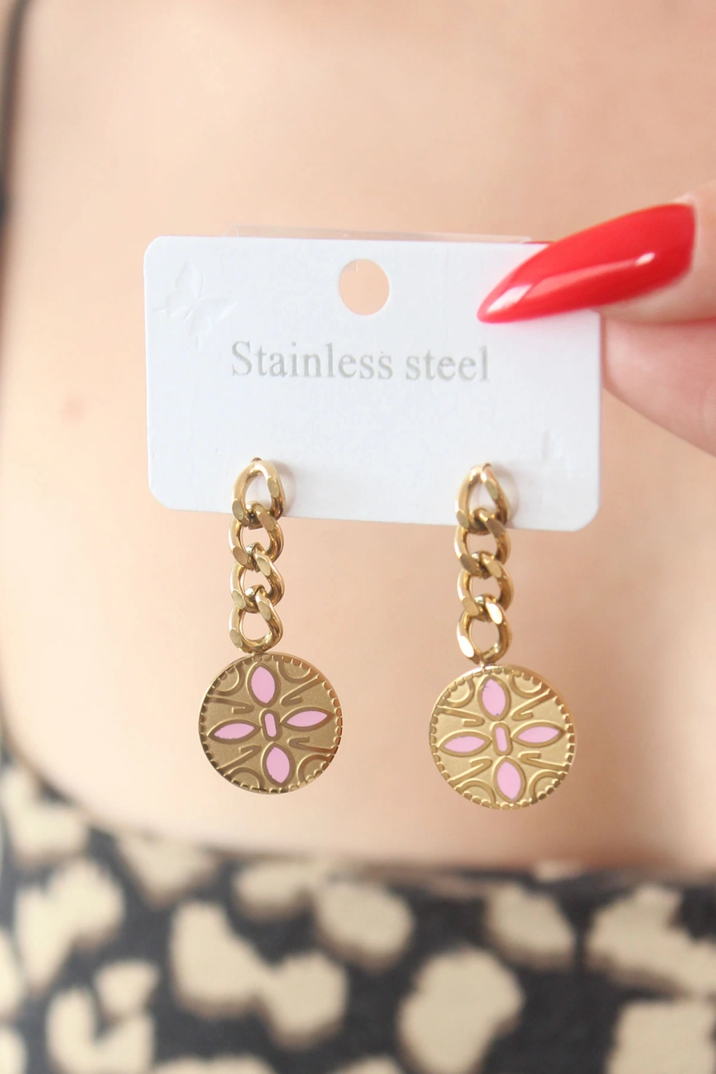 316L Çelik Gold Renk Sallantı Çiçek Model İşleme Detay Kadın Küpe - TJ-BKP7569