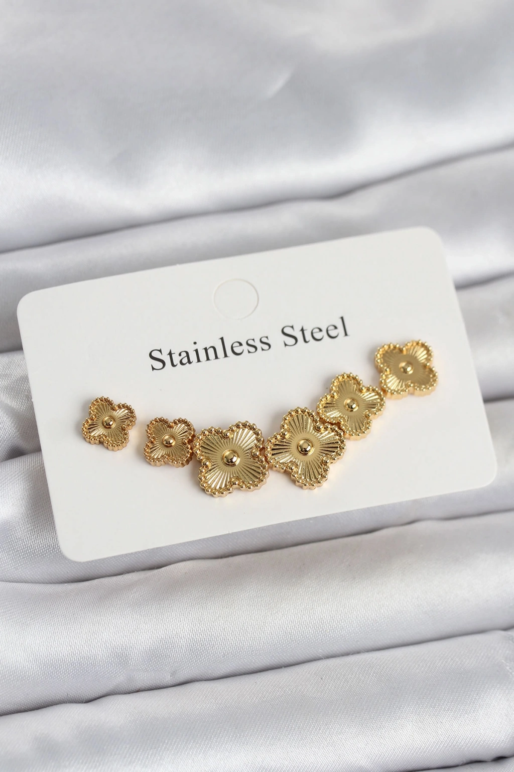 316L Çelik Gold Renk Yonca Küpe Seti - TJ-BKP11699