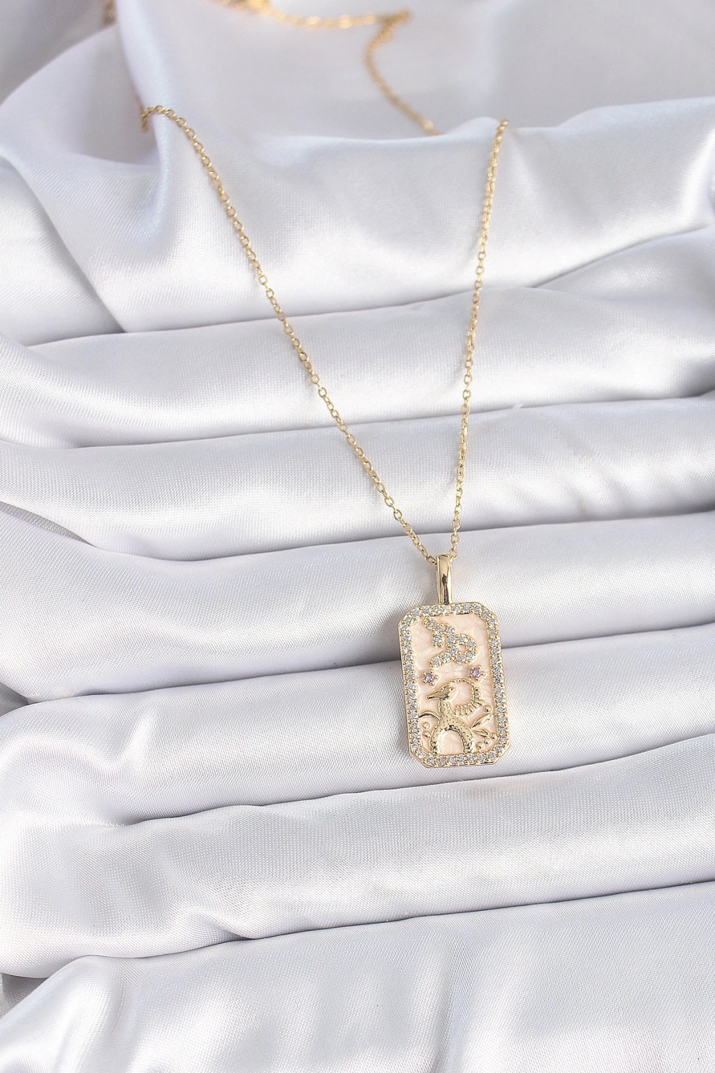 316L Çelik Gold Renk Zincir Oğlak Burcu Zirkon Taşlı Kadın Kolye - TJ-BKO9459