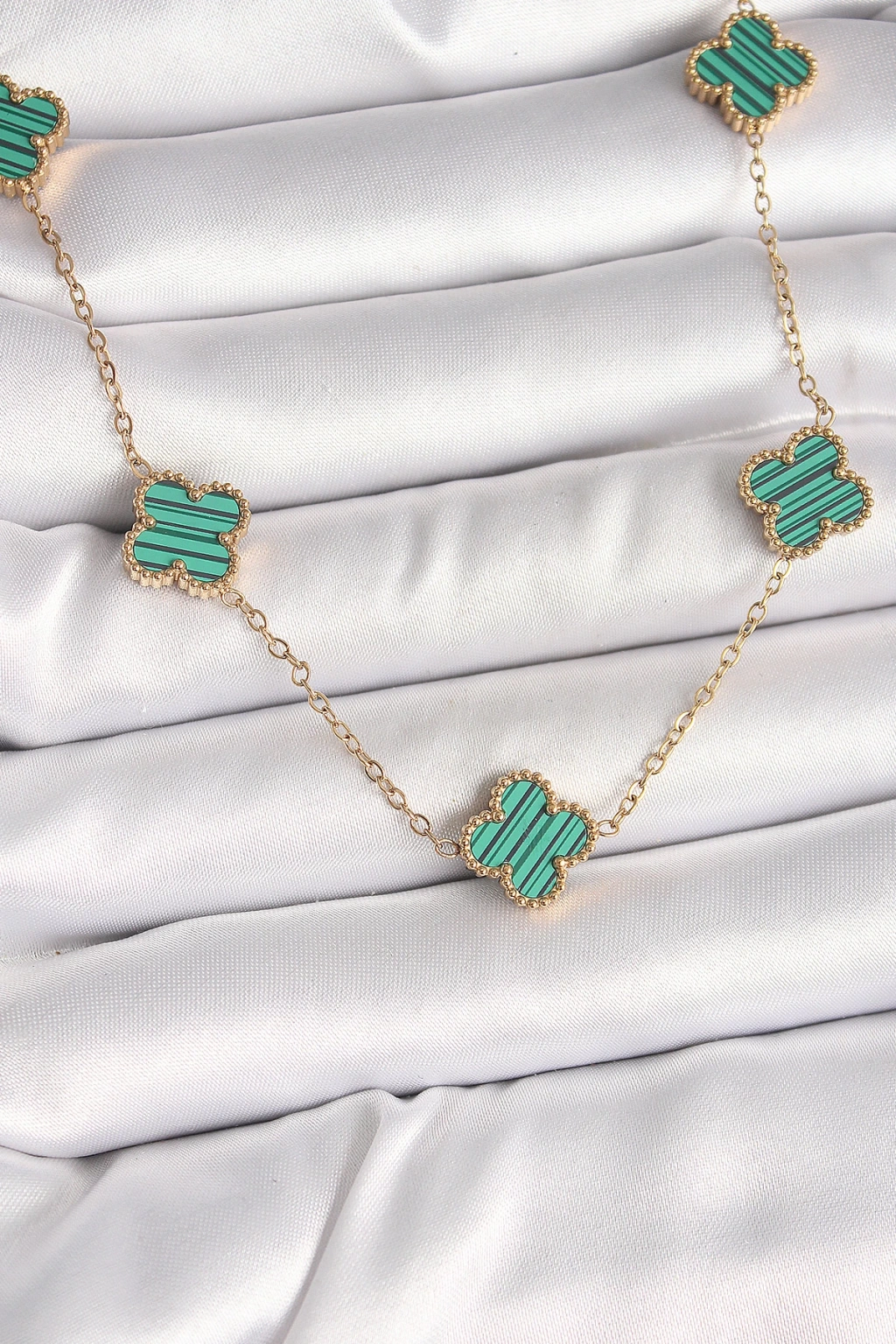 316L Çelik Gold Renk Zincir Yeşil Yonca Model Kadın Kolye - TJ-BKO9925