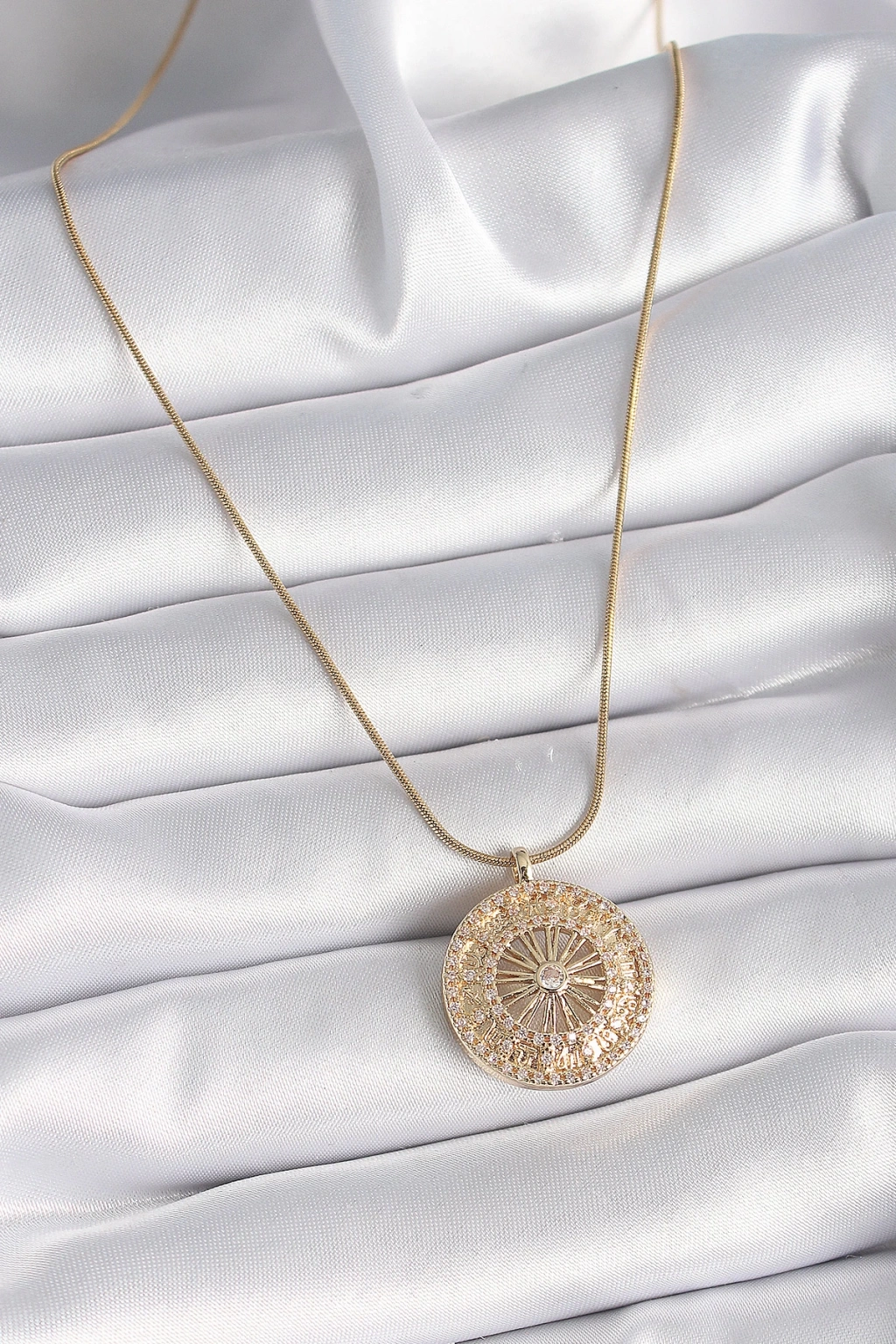316L Çelik Gold Renk Zirkon Taşlı 12 Burç Madalyon Model Kadın Kolye - TJ-BKO9542