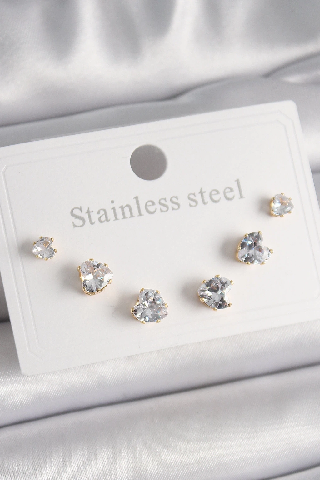 316L Çelik Gold Renk Zirkon Taşlı Kalp Model Kadın Küpe Seti - TJ-BKP9880