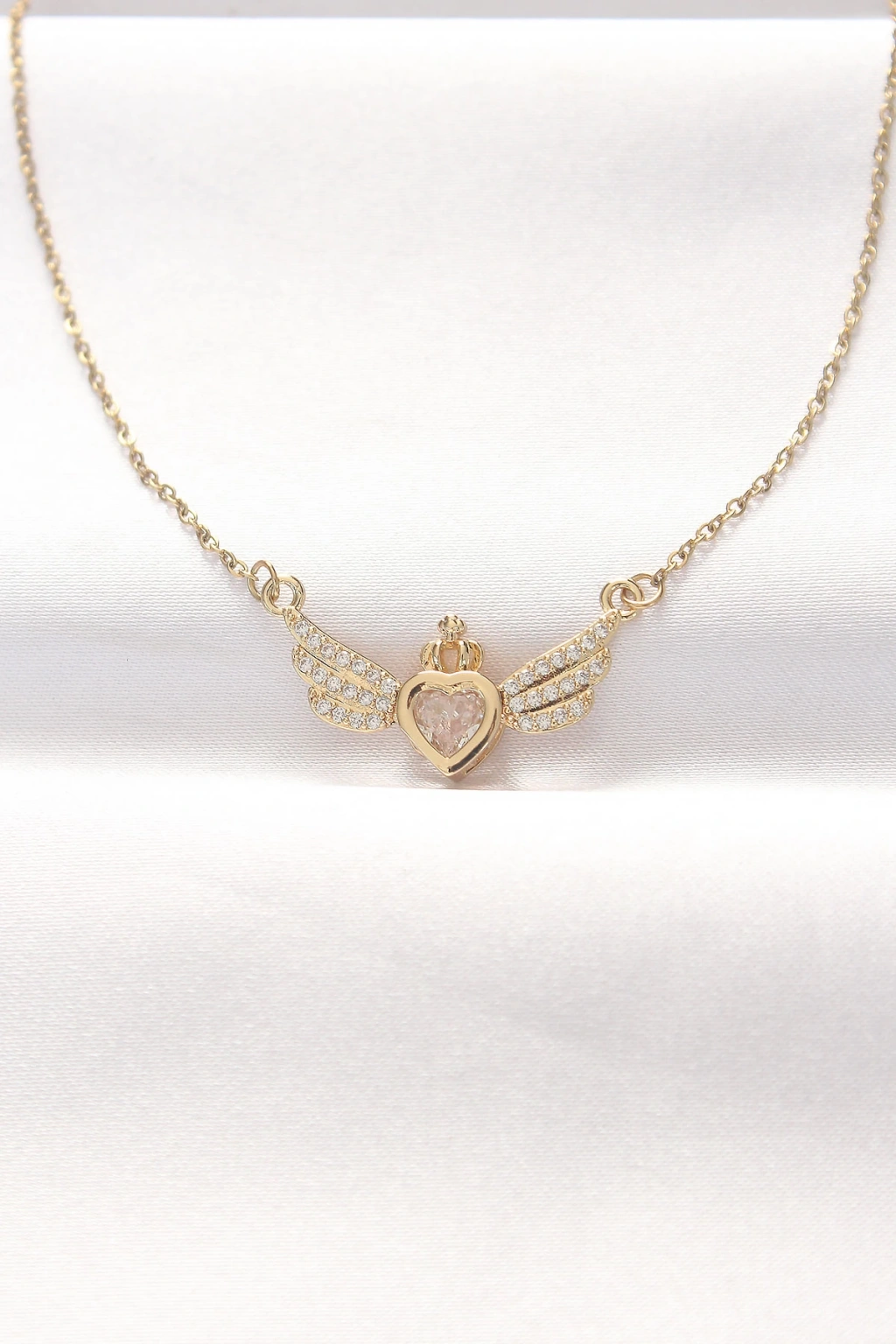 316L Çelik Gold Renk Zirkon Taşlı Kalpli Kanat Kolye - TJ-BKO8516