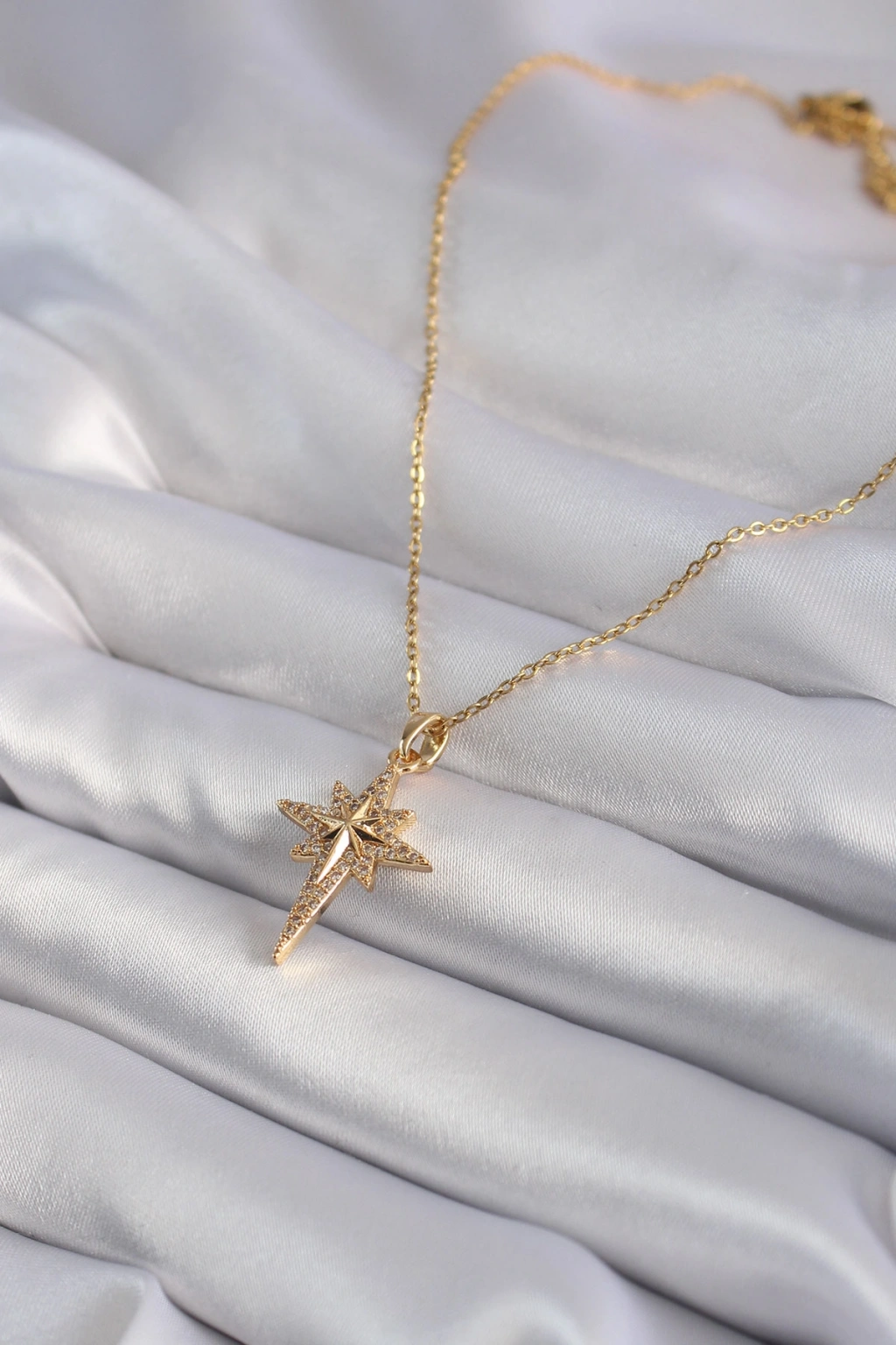 316L Çelik Gold Renk Zirkon Taşlı Kutup Yıldızı Model Kadın Kolye - TJ-BKO8349