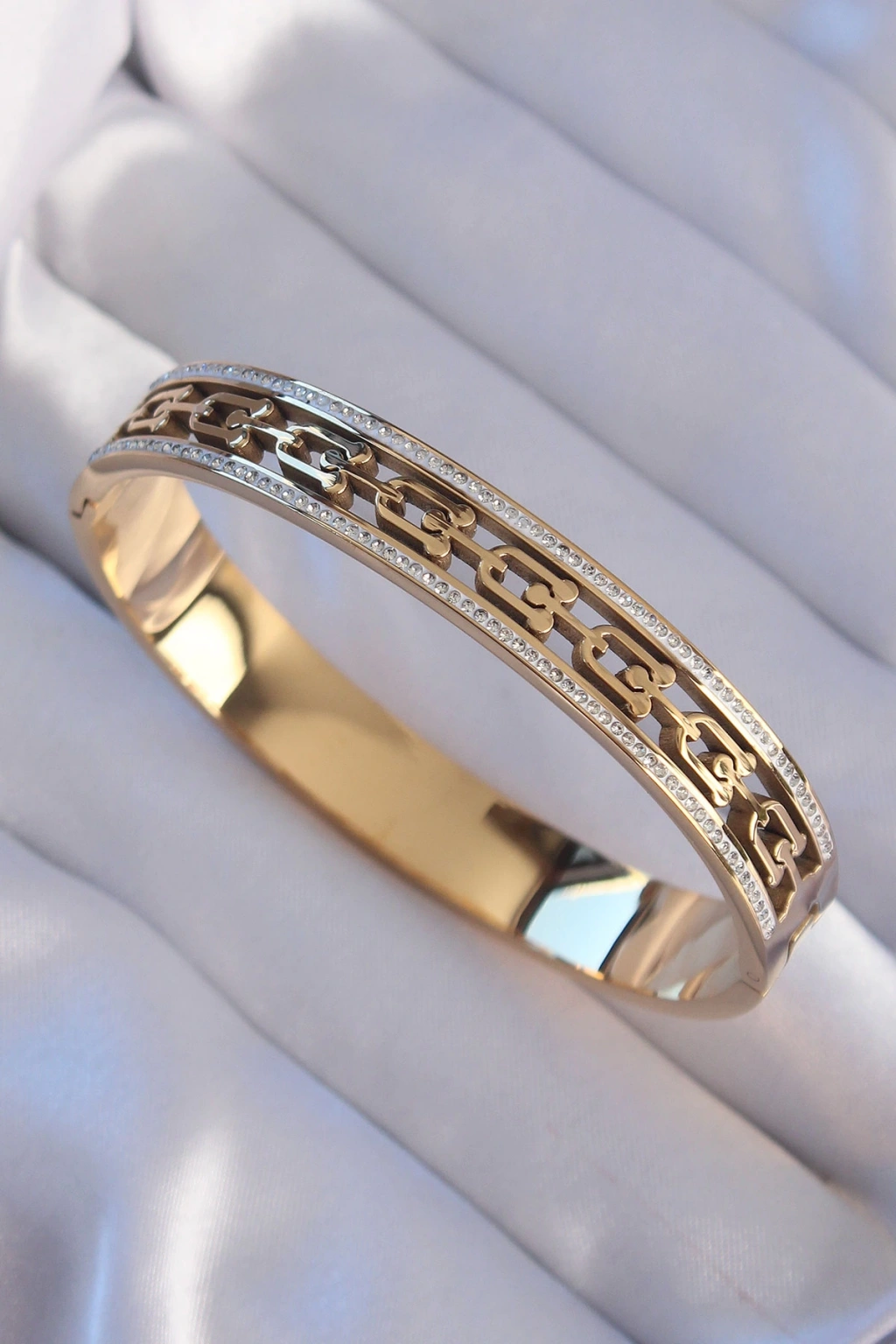 316L Çelik Gold Renk Zirkon Taşlı Tiffany Model Kelepçe - TJ-BB6188