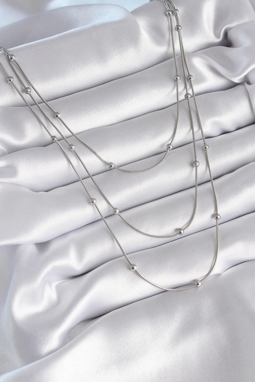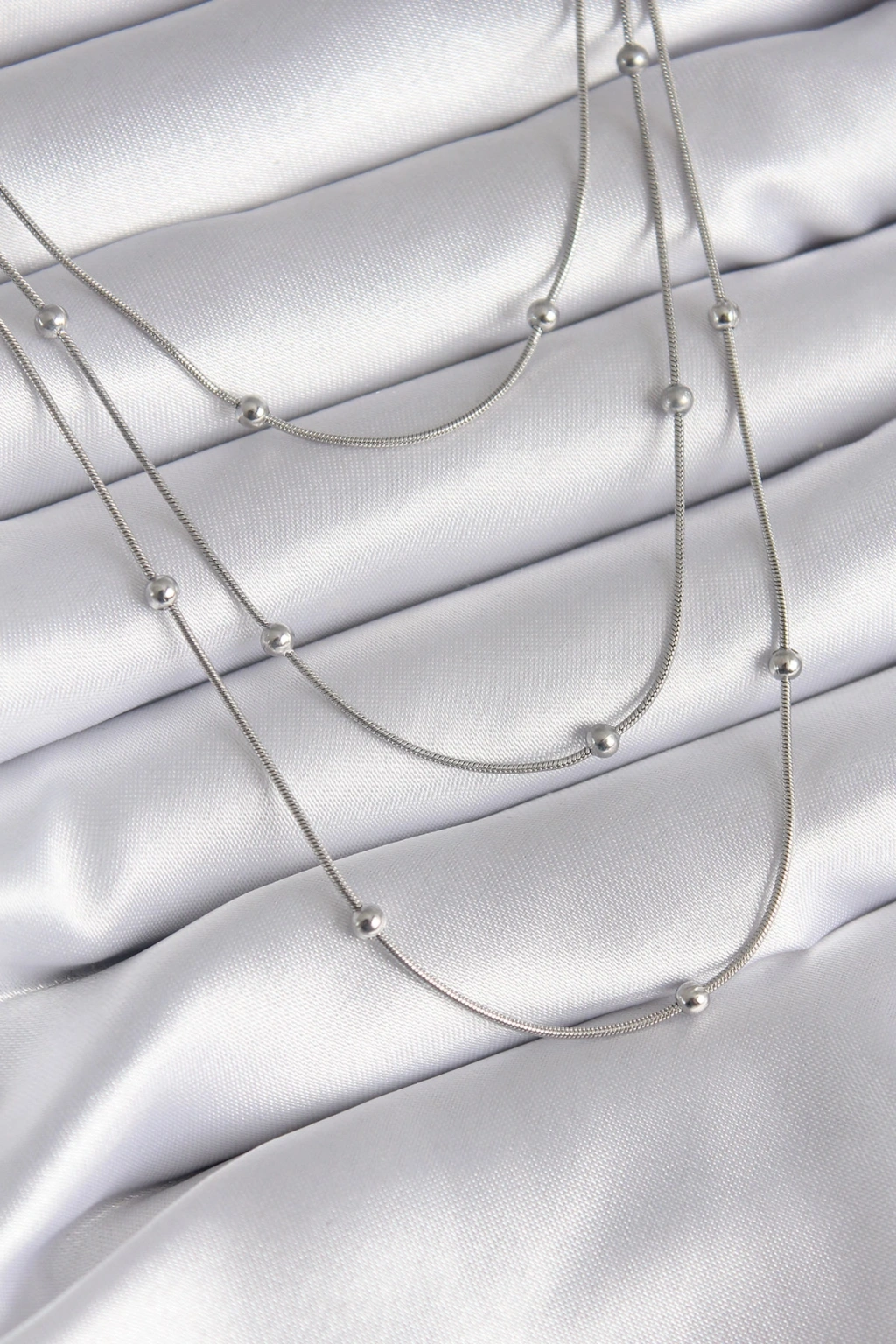316L Çelik Gümüş Renk 3'lü Topçuk Detay Kadın Kolye - TJ-BKO8313