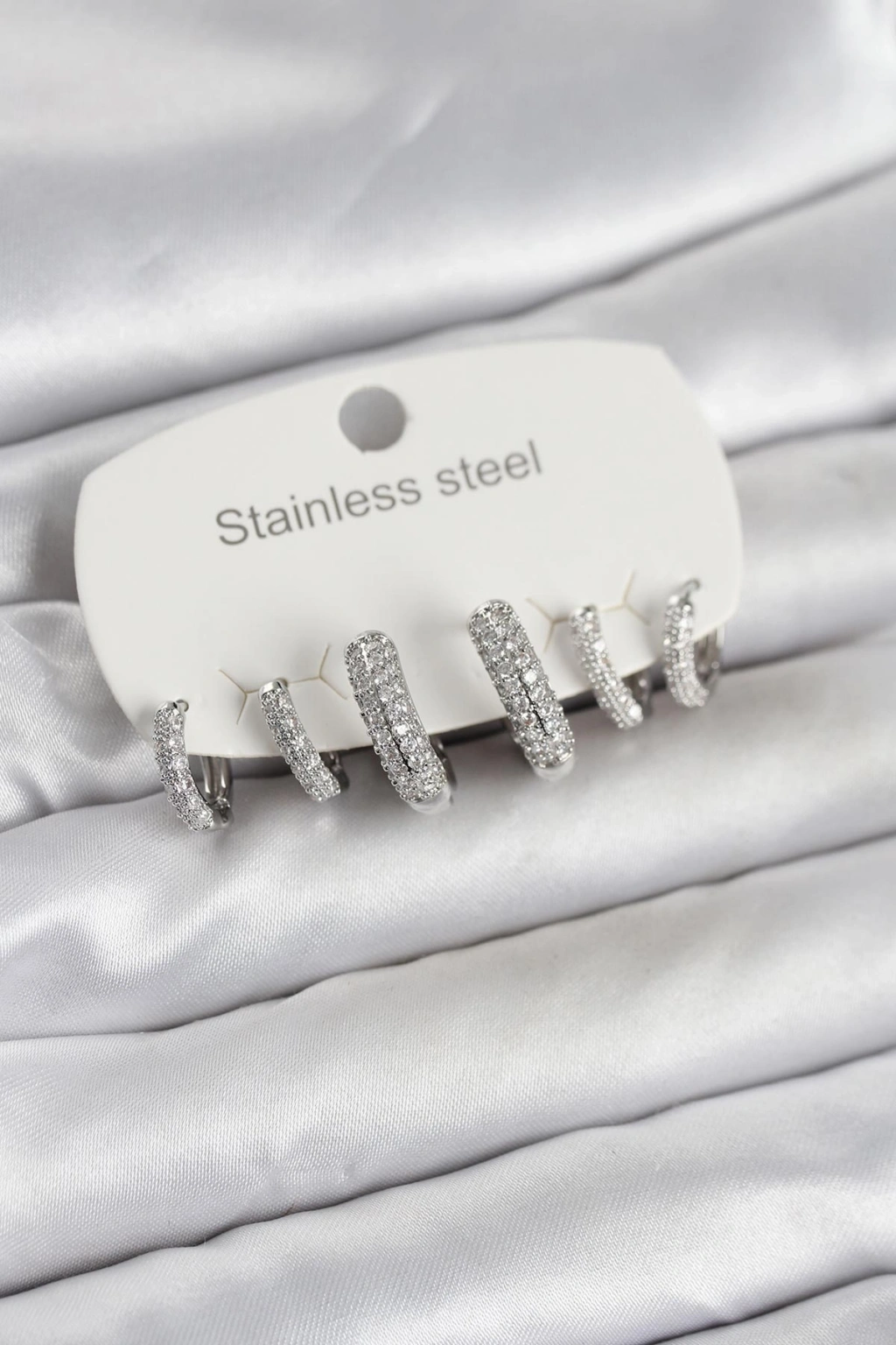 316L Çelik Gümüş Renk 6'lı Set Zirkon Taşlı Halka Model Kadın Küpe - TJ-BKP11754