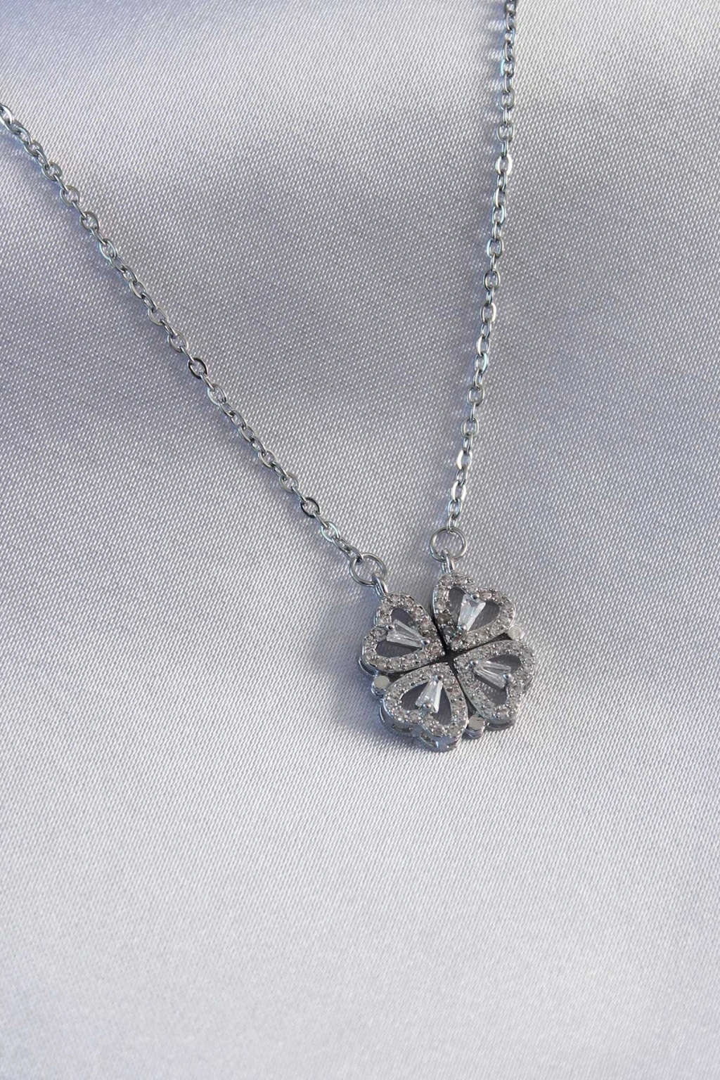 316L Çelik Gümüş Renk Açılır Yonca Model Kadın Kolye - TJ-BKO7291