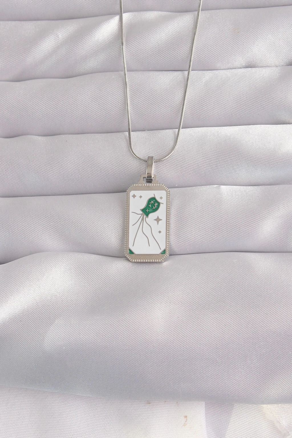 316L Çelik Gümüş Renk Beyaz Mineli Tarot Kolye - TJ-BKO9048