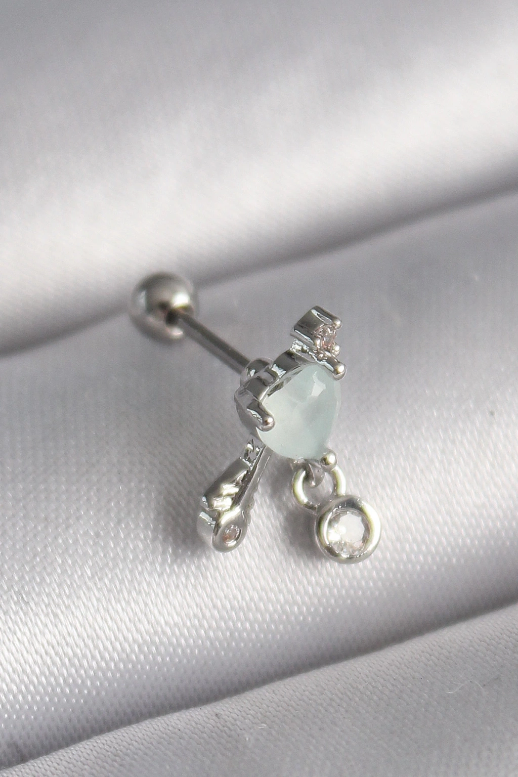 316L Çelik Gümüş Renk Zirkon Taşlı Sallantı Kalp Detay Tragus Piercing - TJ-PR1361