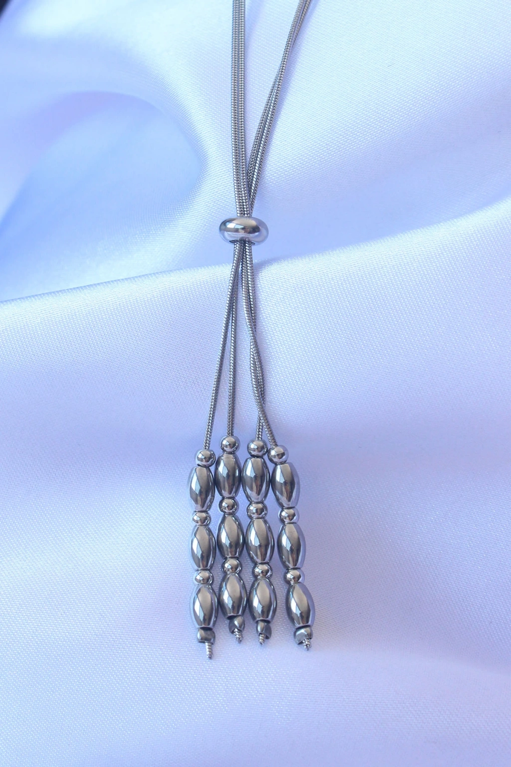 316L Çelik Gümüş Renk Boyu Ayarlanabilir Sallantılı Model Kolye - TJ-BKO8886