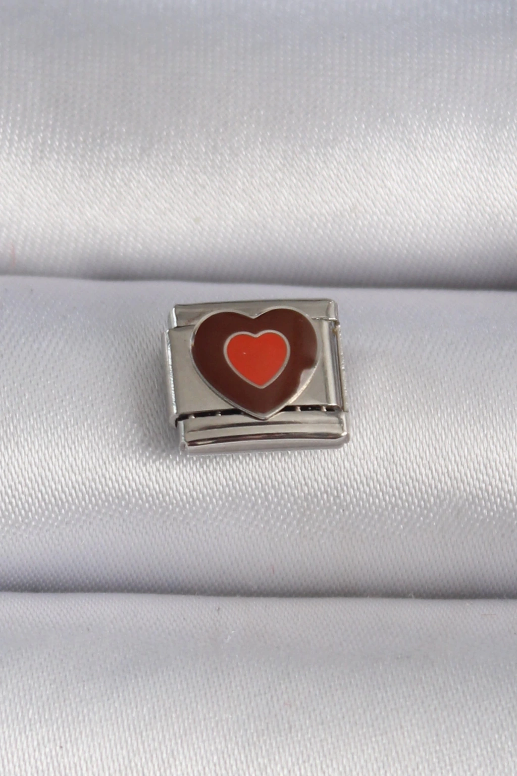 316L Çelik Gümüş Renk Kahverengi Kalp İşlemeli Nomination Charm - TJ-BC1018