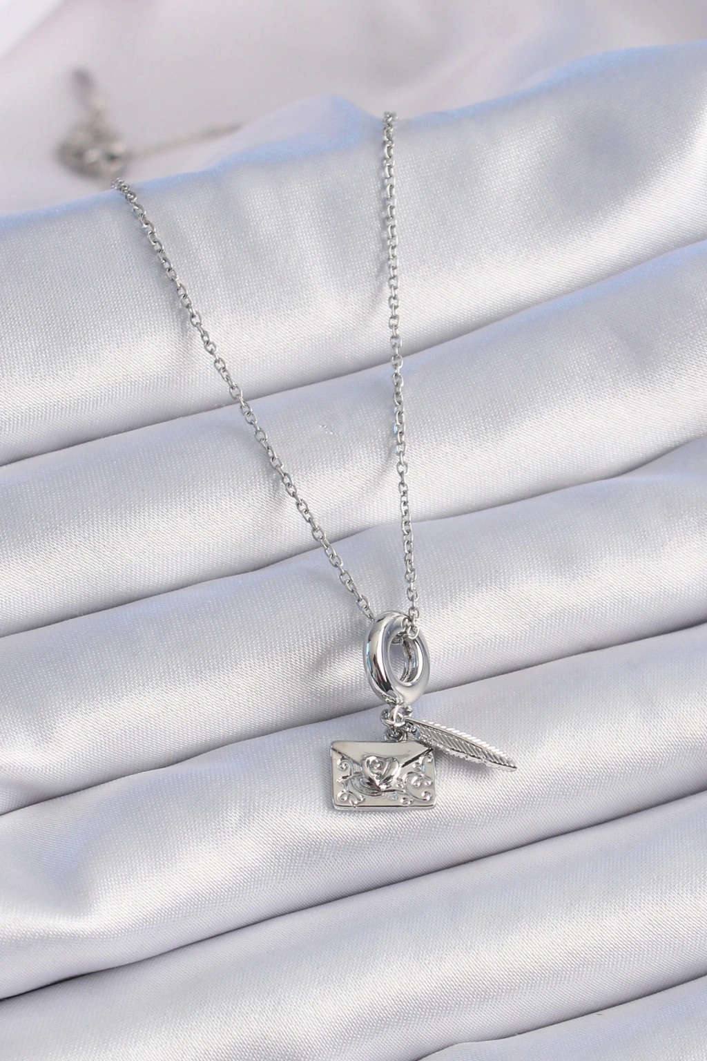 316L Çelik Gümüş Renk Kalp Detay Mektup Figür Charm Model Kadın Kolye - TJ-BKO9313