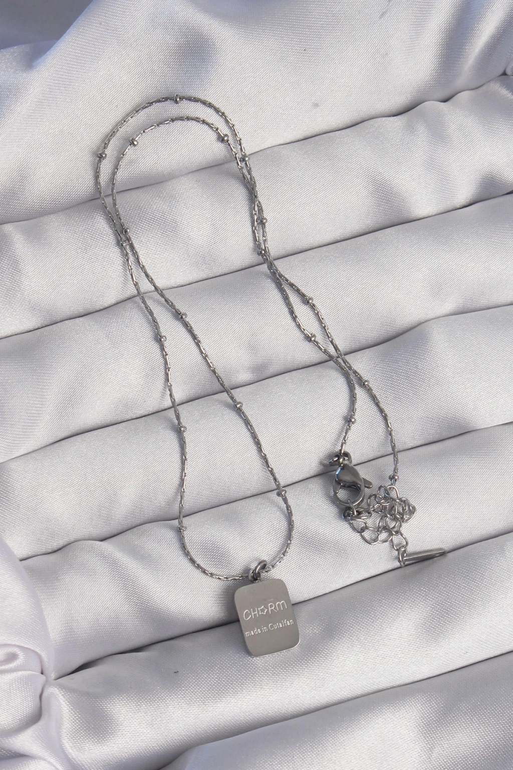 316L Çelik Gümüş Renk Kare Charm Model Kolye - TJ-BKO8927