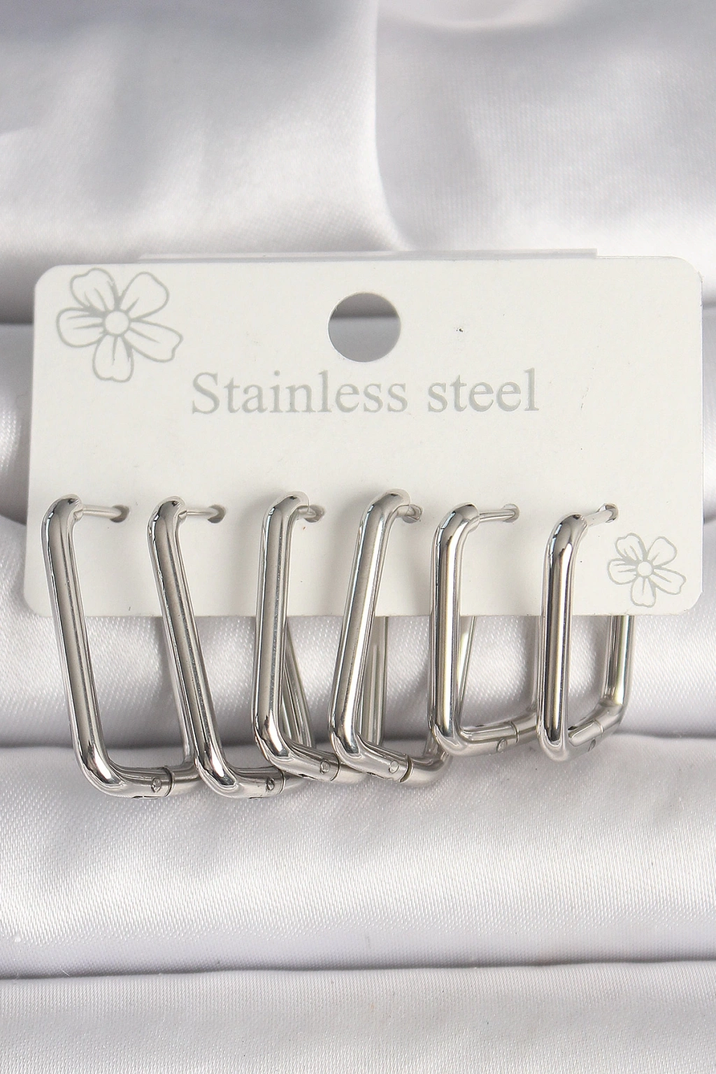 316L Çelik Gümüş Renk Kare Model Kadın Küpe Seti - TJ-BKP10353