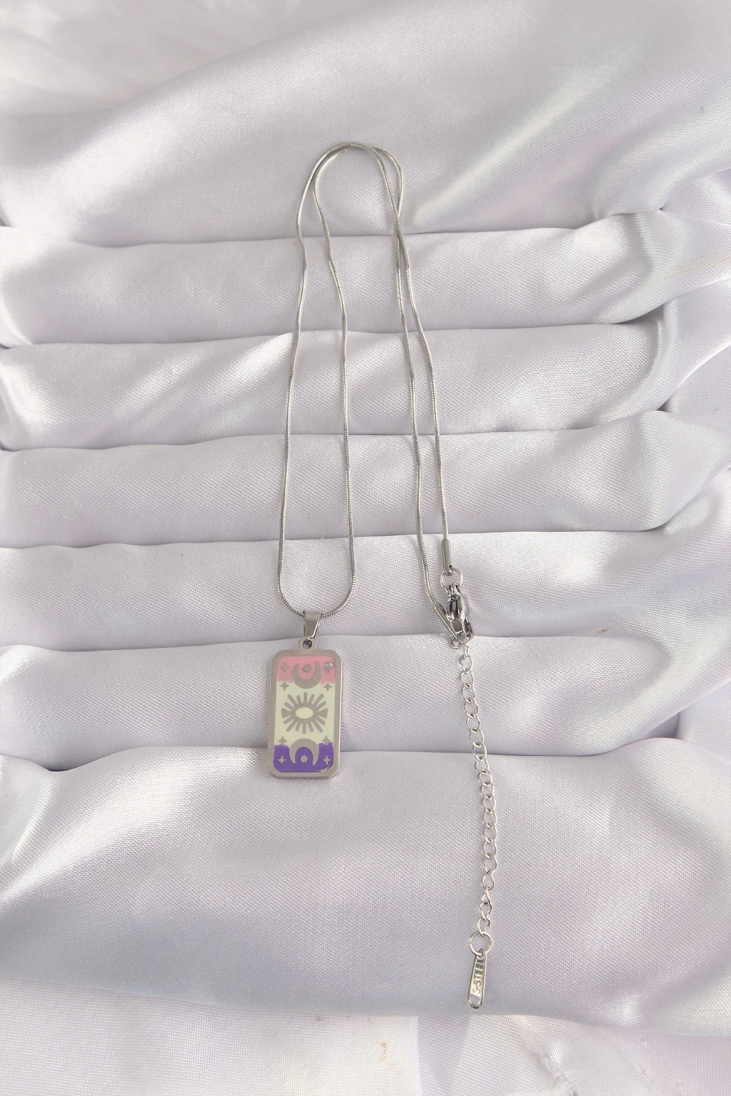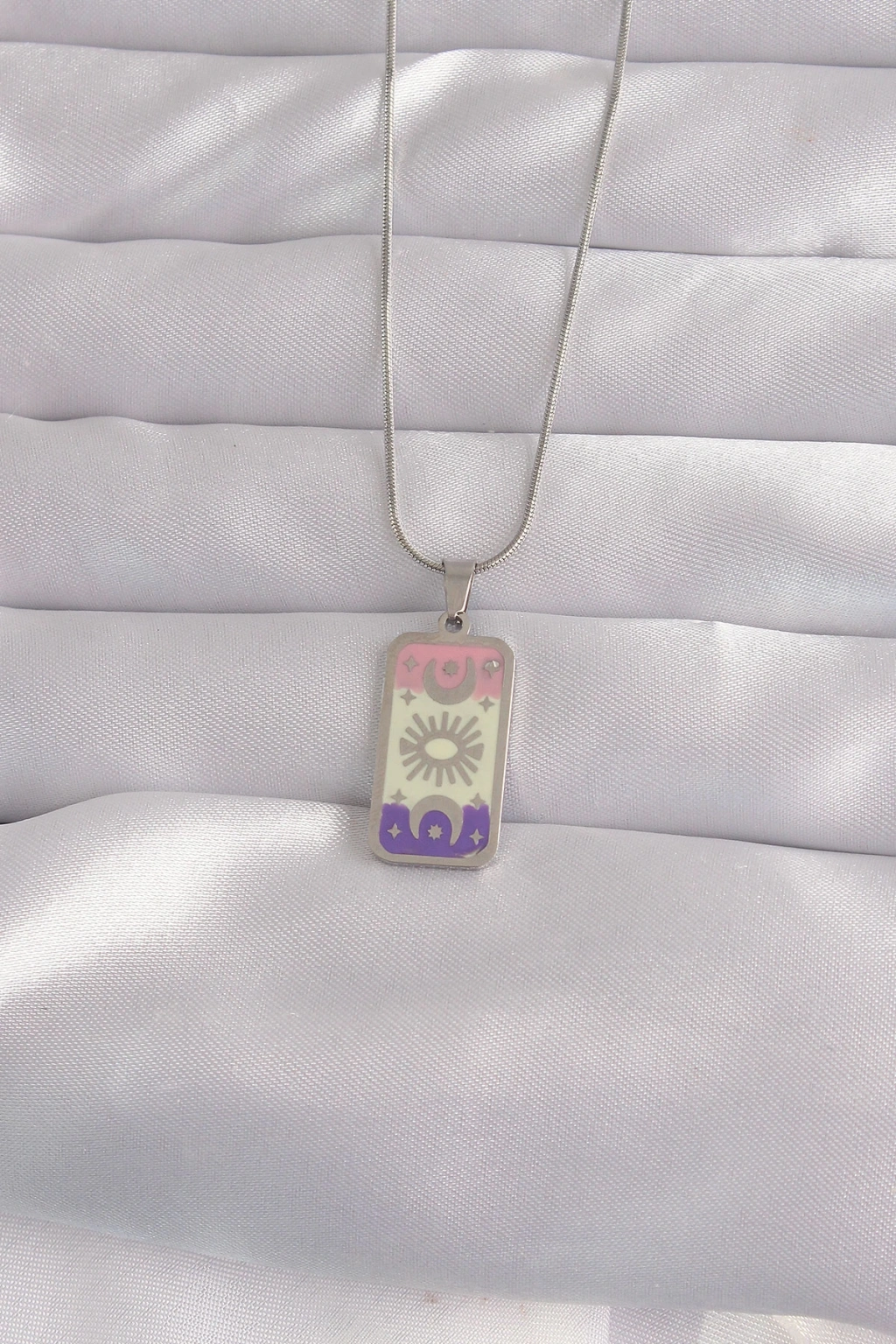 316L Çelik Gümüş Renk Karışık Mineli Ay Figür Tarot Kolye - TJ-BKO9044
