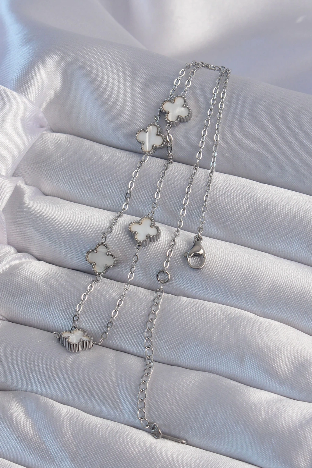 316L Çelik Gümüş Renk Minimal Beyaz Sedefli Yonca Kolye - TJ-BKO9001