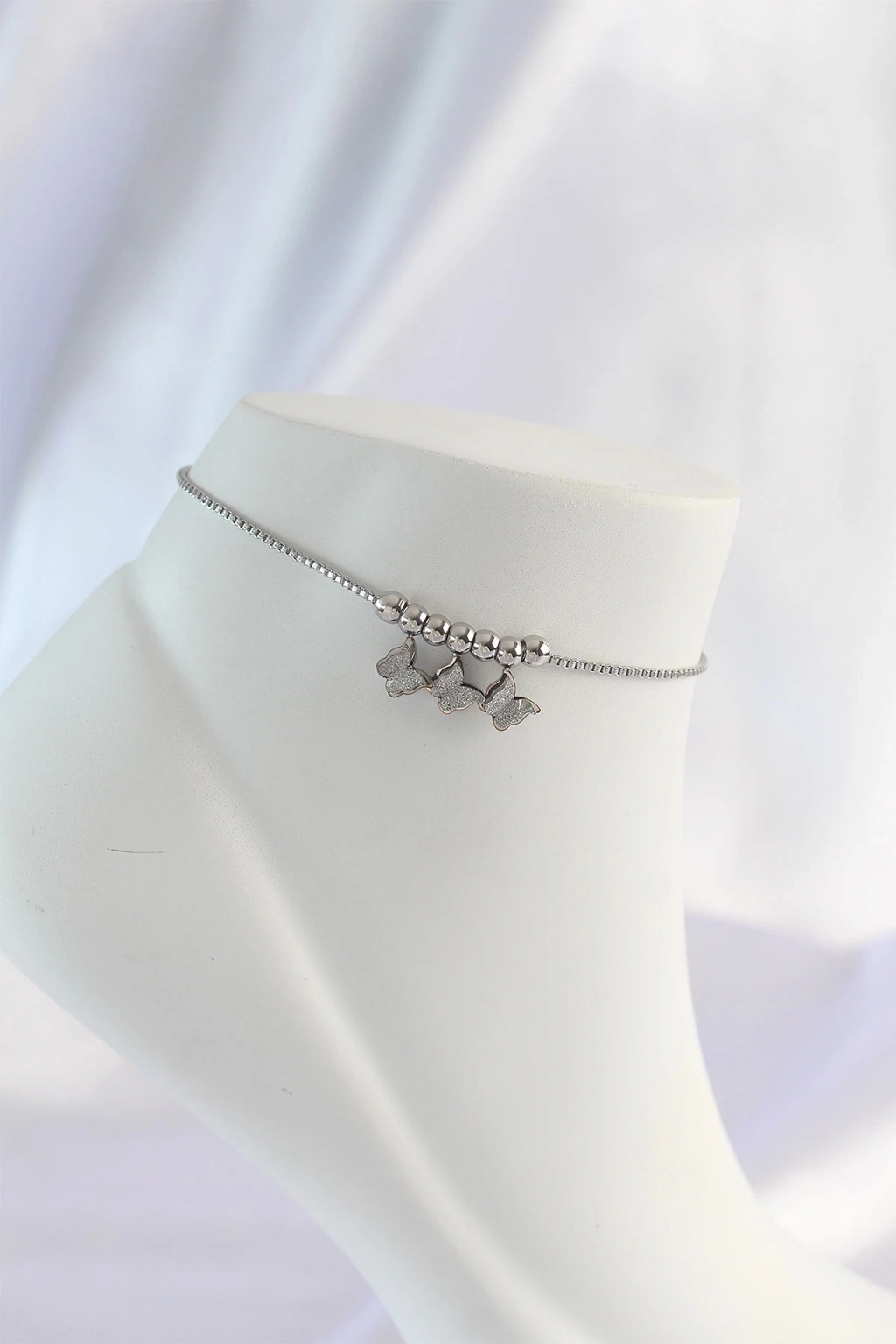 316L Çelik Gümüş Renk Minimal Kelebek Tasarımlı Halhal - TJ-HH1570